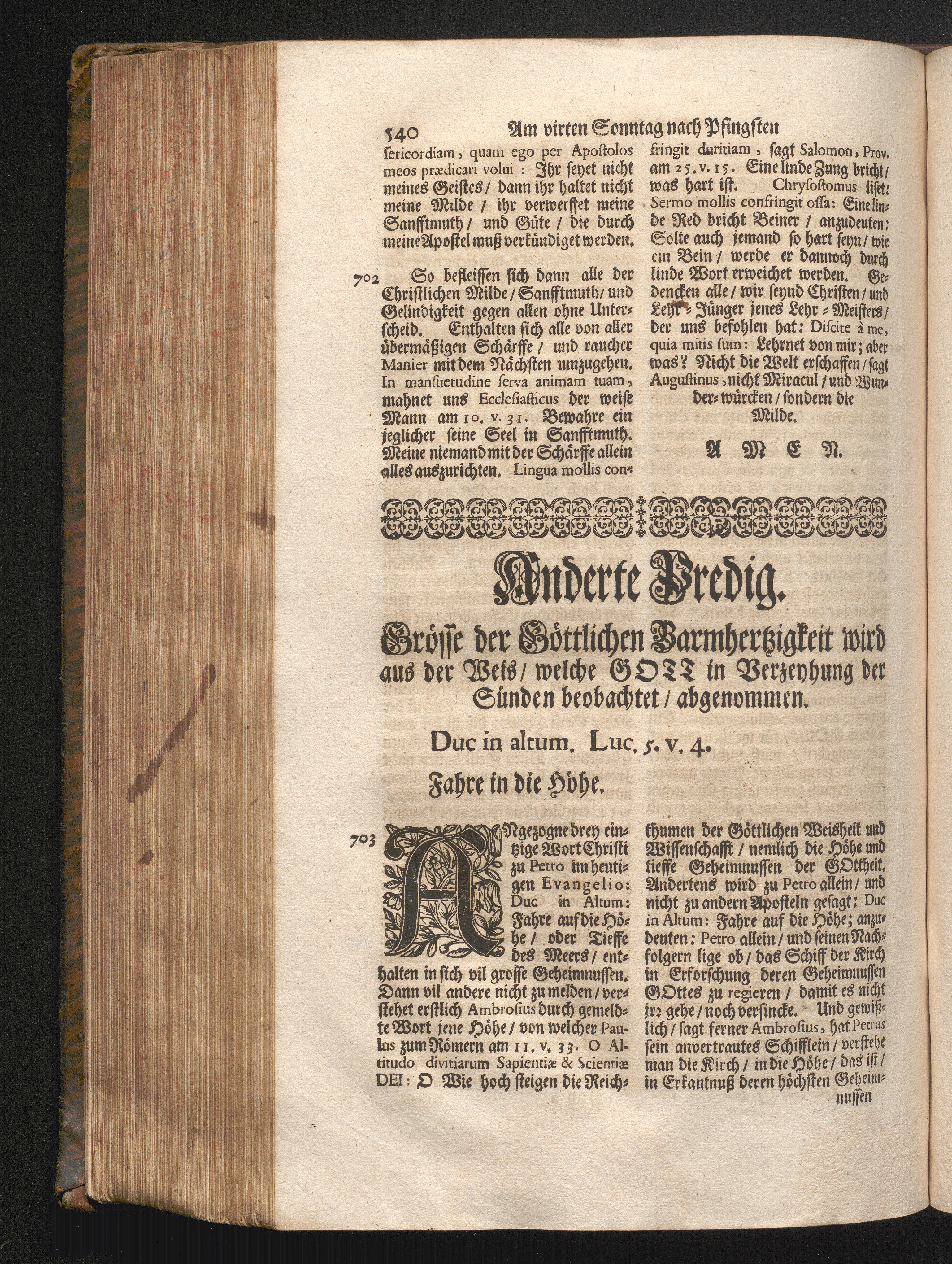 II. Predig. Jnhalt. Grösse der Göttlichen Barmhertzigkeit wird aus der Weis/ welche[...]