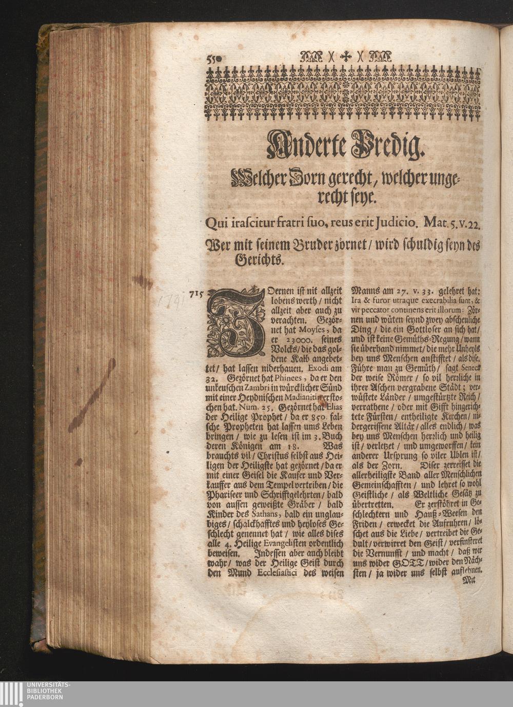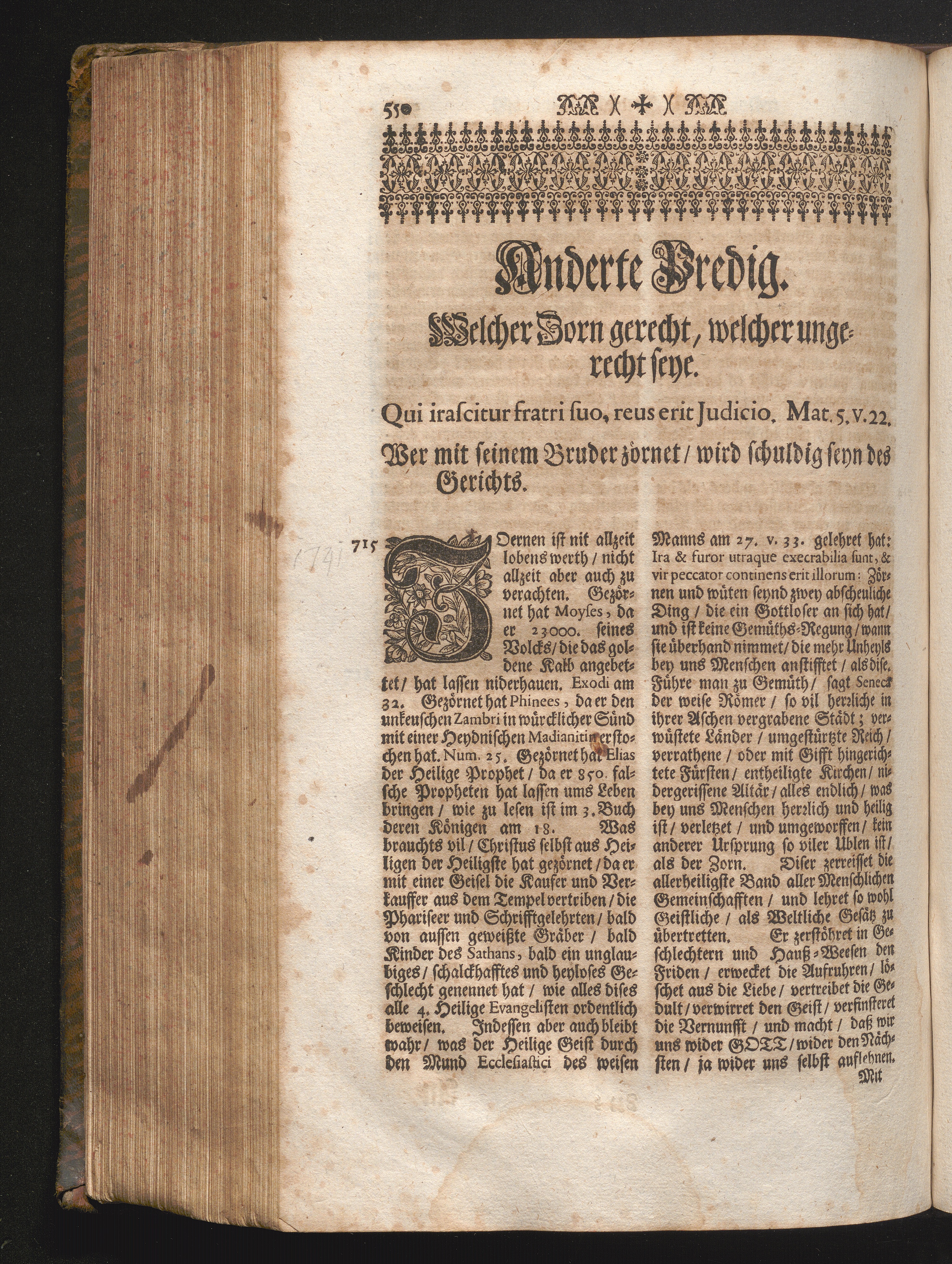 II. Predig. Jnhalt. Welcher Zorn gerecht/ welcher ungerecht seye. Qui irascitur fratri[...]