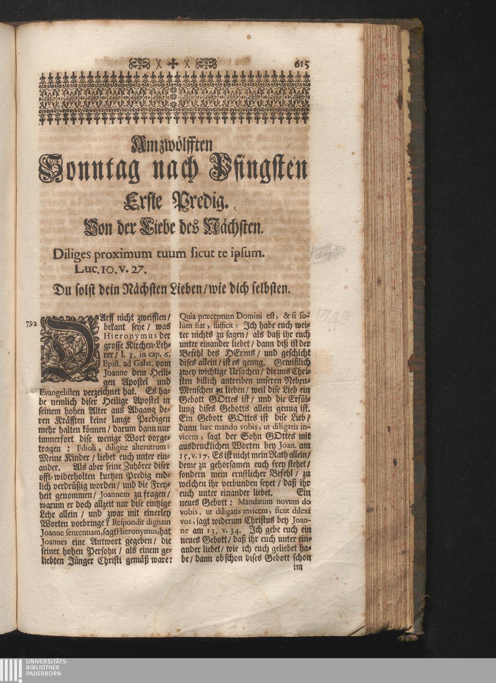 I. Predig. Jnhalt. Von der Liebe des Nächsten. Diliges proximum tuum sicut te ipsum.[...]