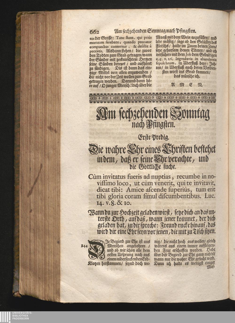 I. Predig. Jnhalt. Die wahre Ehr eines Christen bestehet in dem/ daß er seine Ehr[...]