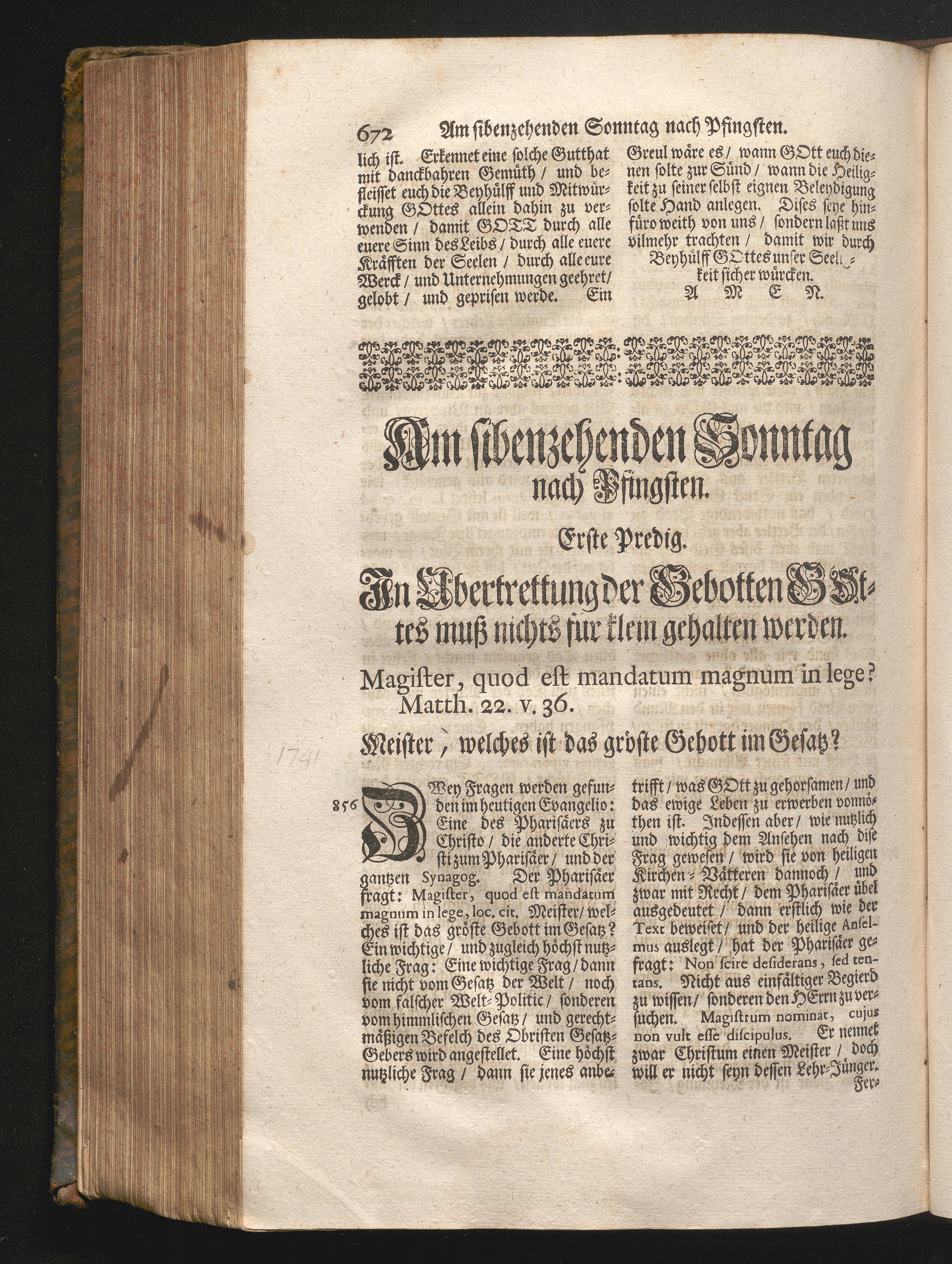 I. Predig. Jnhalt. Jn Ubertrettung der Gebotten Gottes muß nichts für klein gehalten[...]
