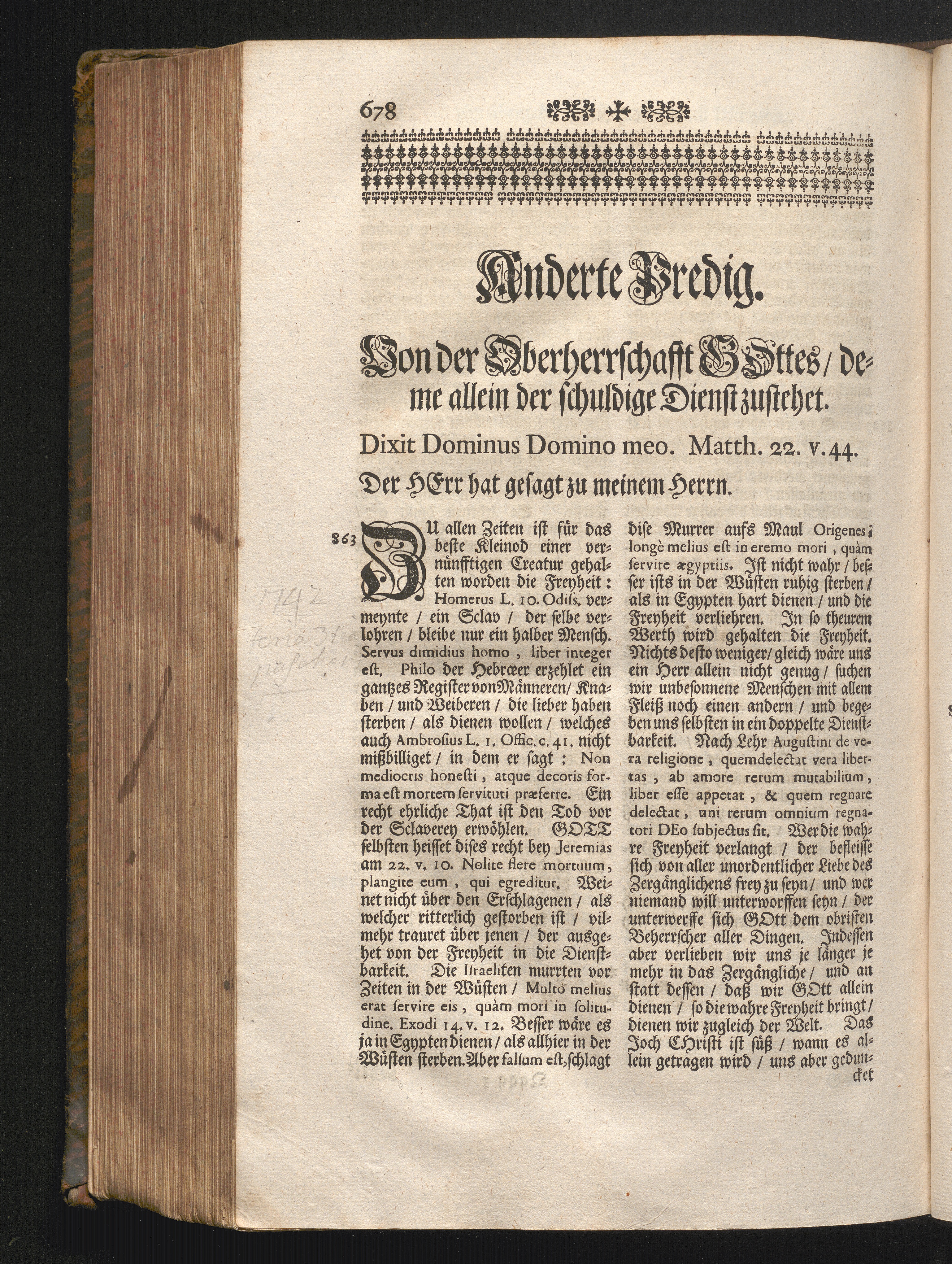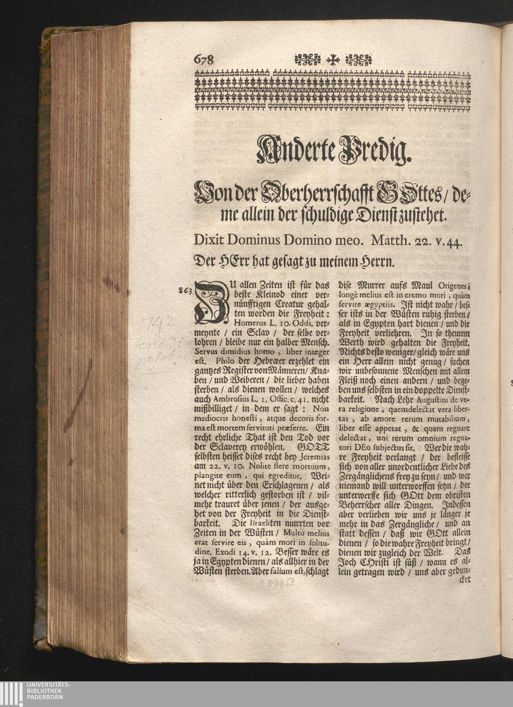 II. Predig. Jnhalt. Von der Ober-Herrschafft Gottes/ deme allein der schuldige Dienst[...]