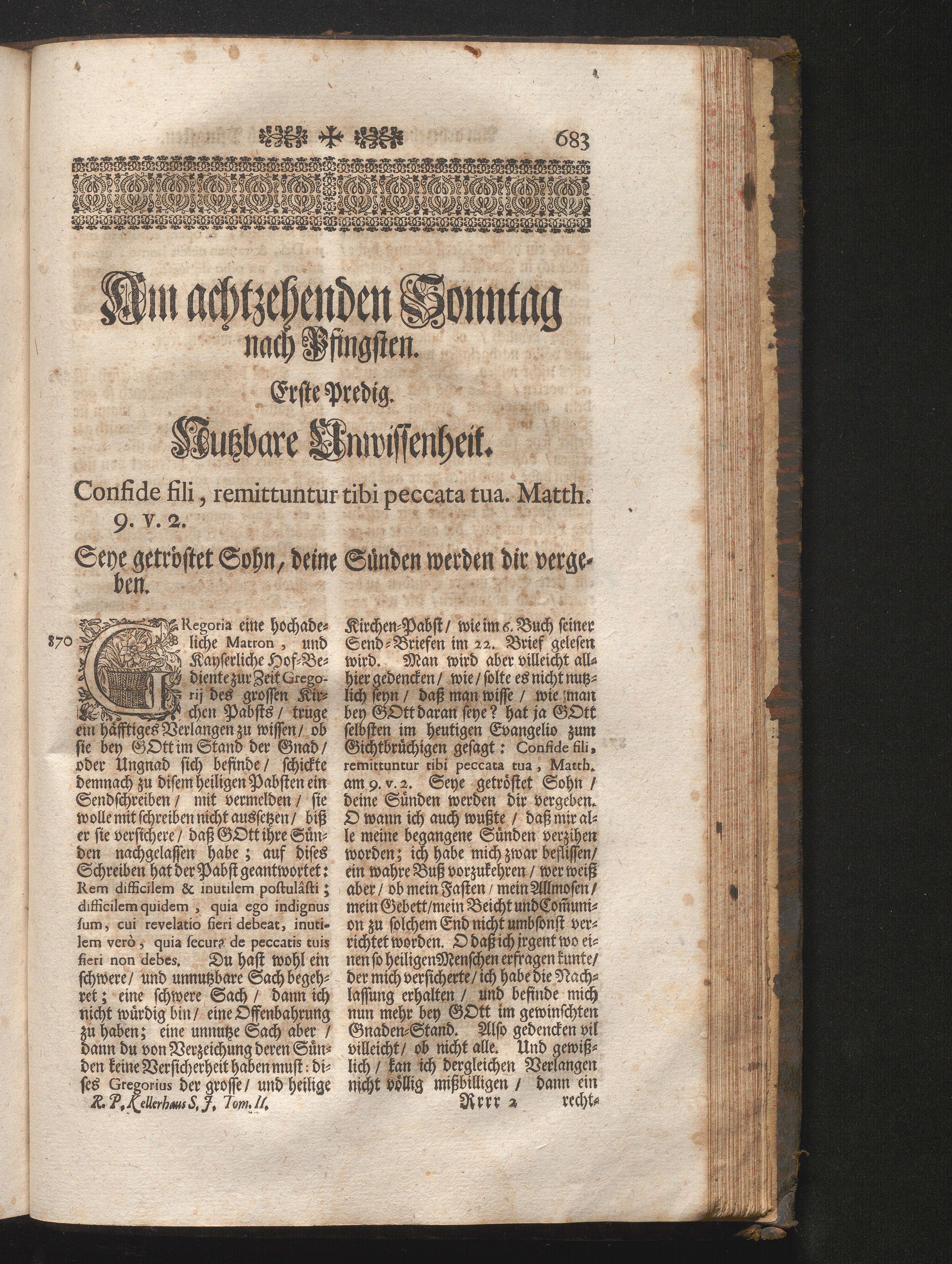 I. Predig. Jnhalt. Nutzbare Unwissenheit. Confide fili, remittuntur tibi peccata[...]
