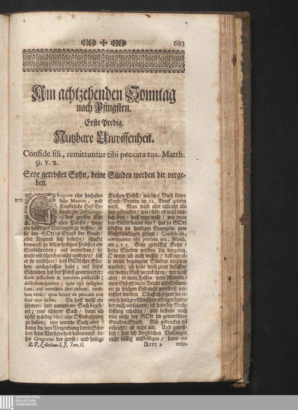 Tomus II (1734) ... Auf Alle Sonntäg des Jahrs, und Heilige Fasten-Zeit eigetheilet