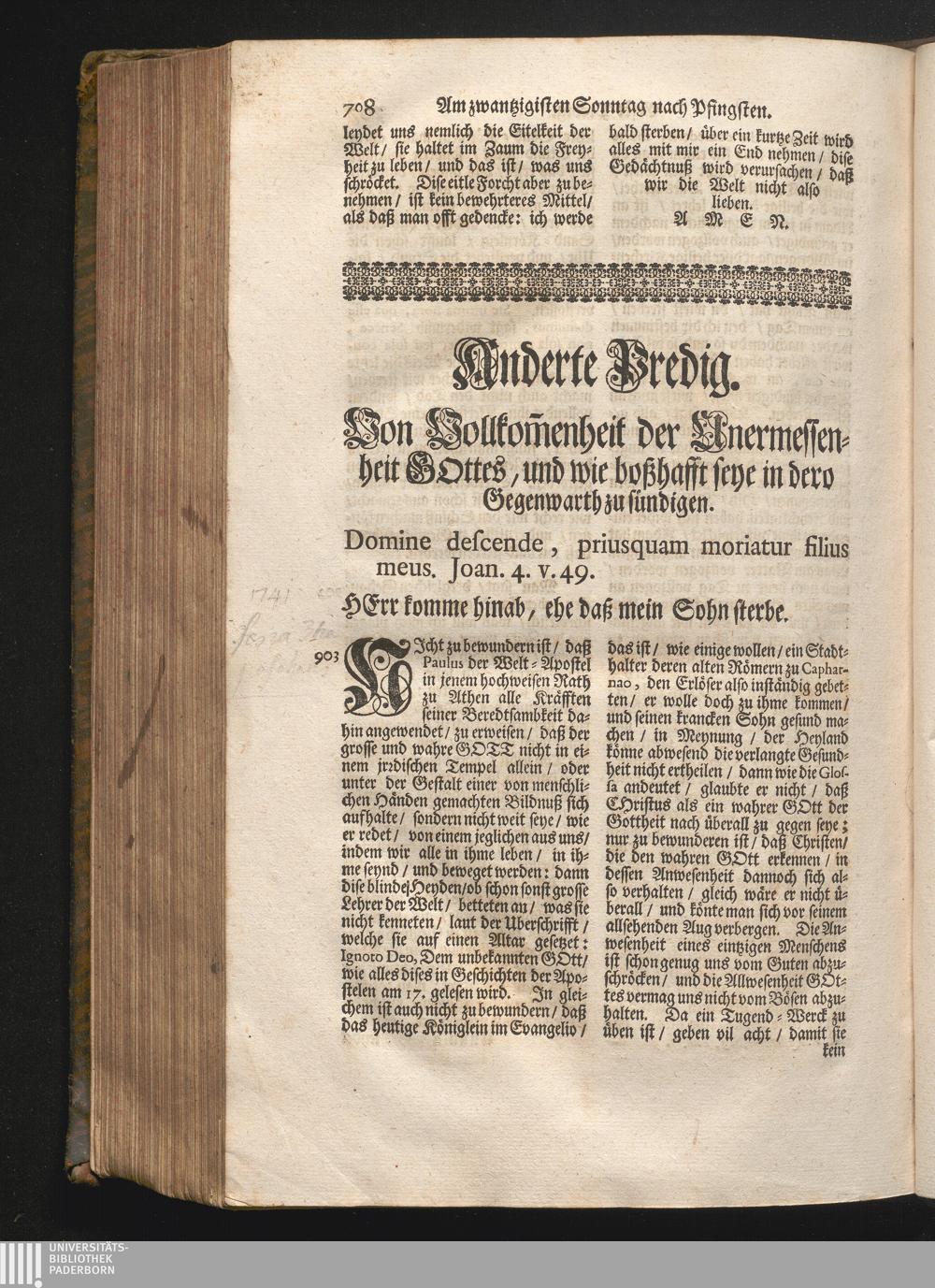 II. Predig. Jnhalt. Von-Vollkommenheit der Unermessenheit Gottes/ und wie boßhafft[...]