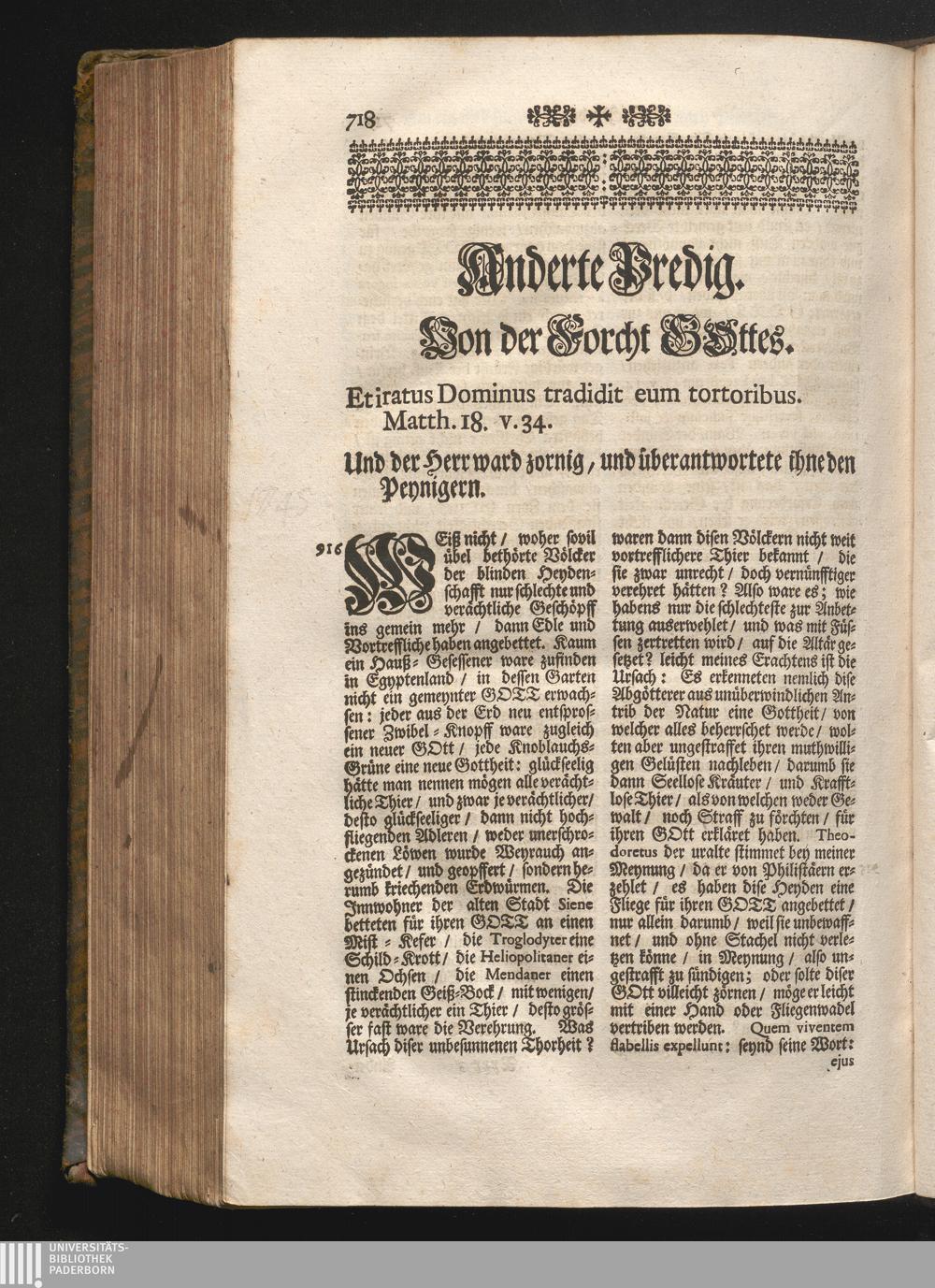 II. Predig. Jnhalt. Von der Forcht Gottes. Et iratus Dominus tradidit eum tortoribus.[...]