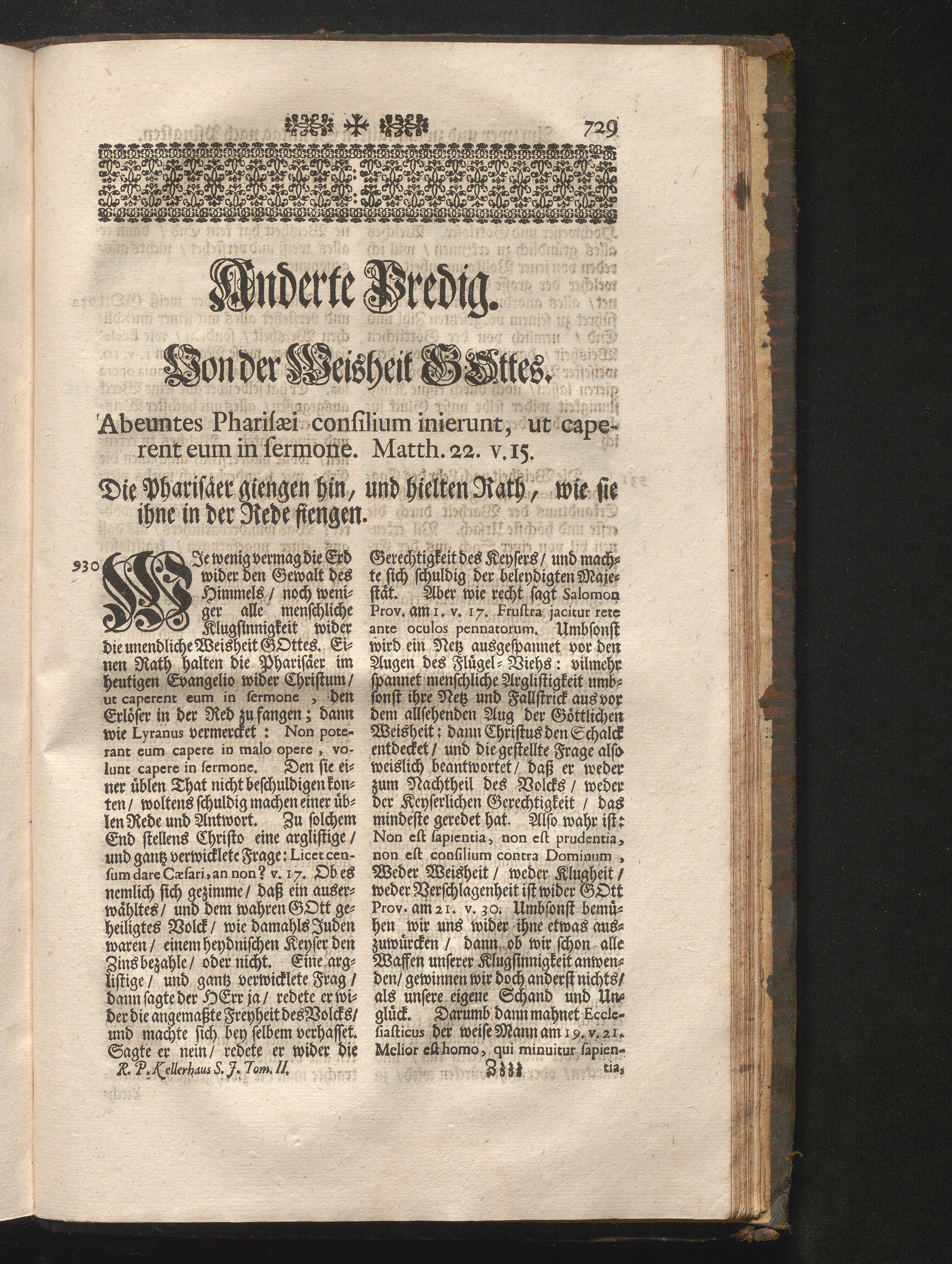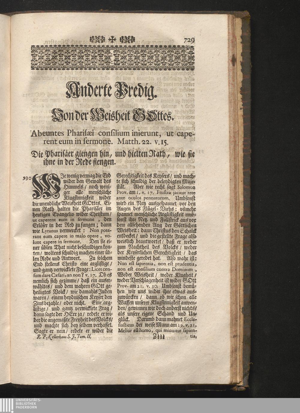 II. Predig. Jnhalt. Von der Weisheit Gottes. Abeuntes Pharisæi consilium inierunt,[...]