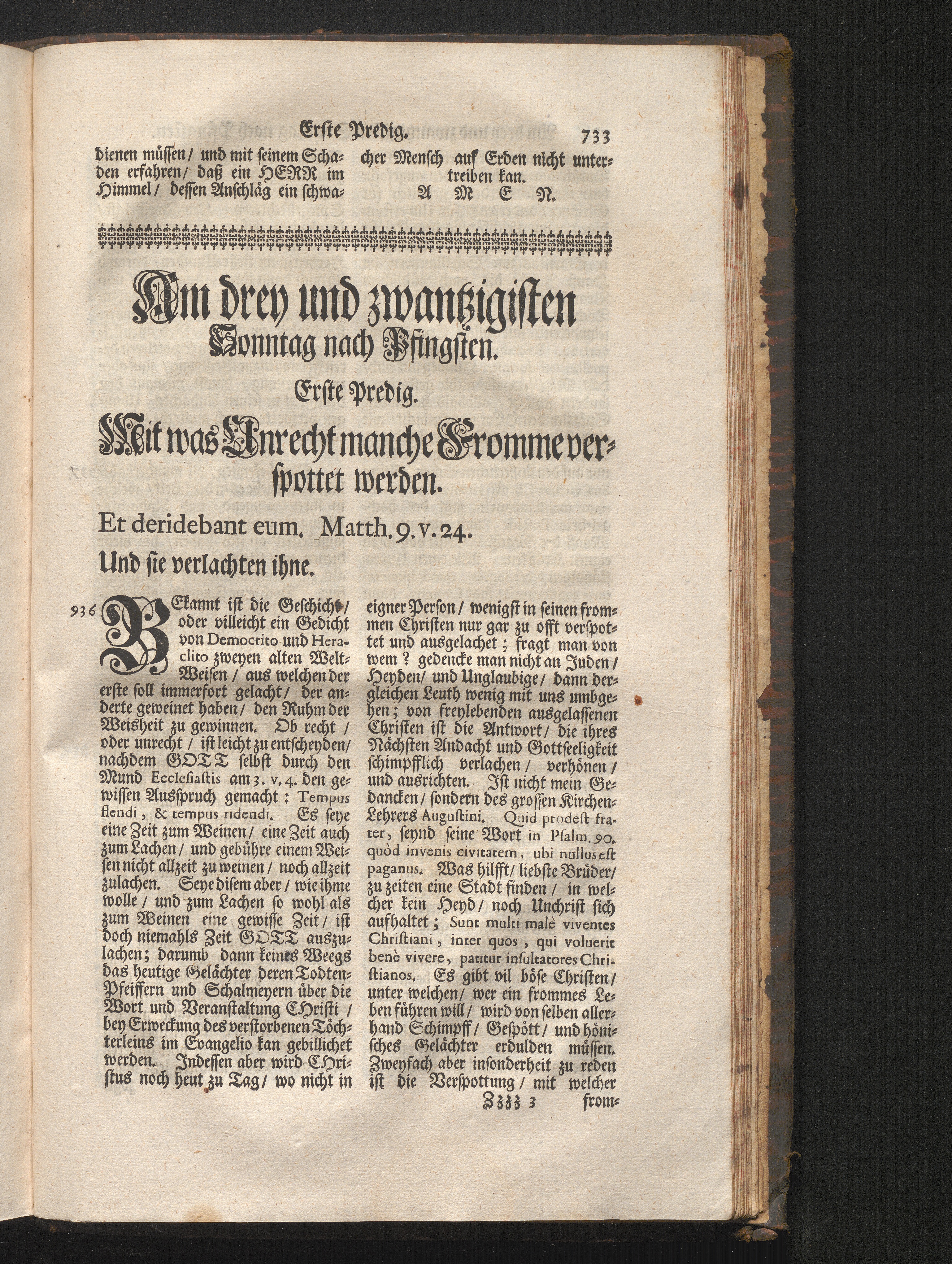 I. Predig. Jnhalt. Mit was Unrecht manche From[m]e verspottet werden. Et deridebant[...]