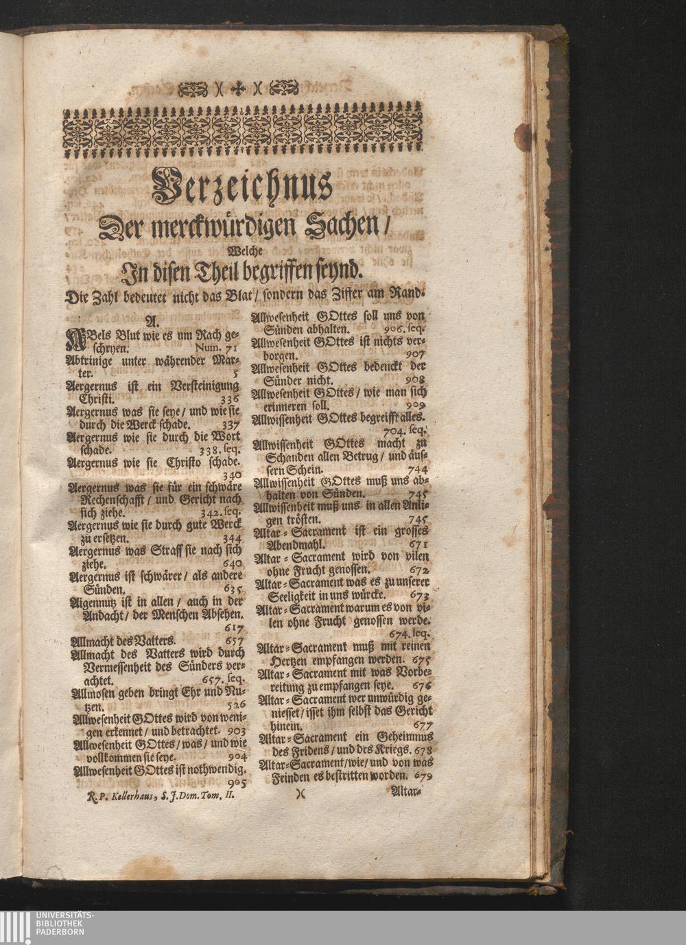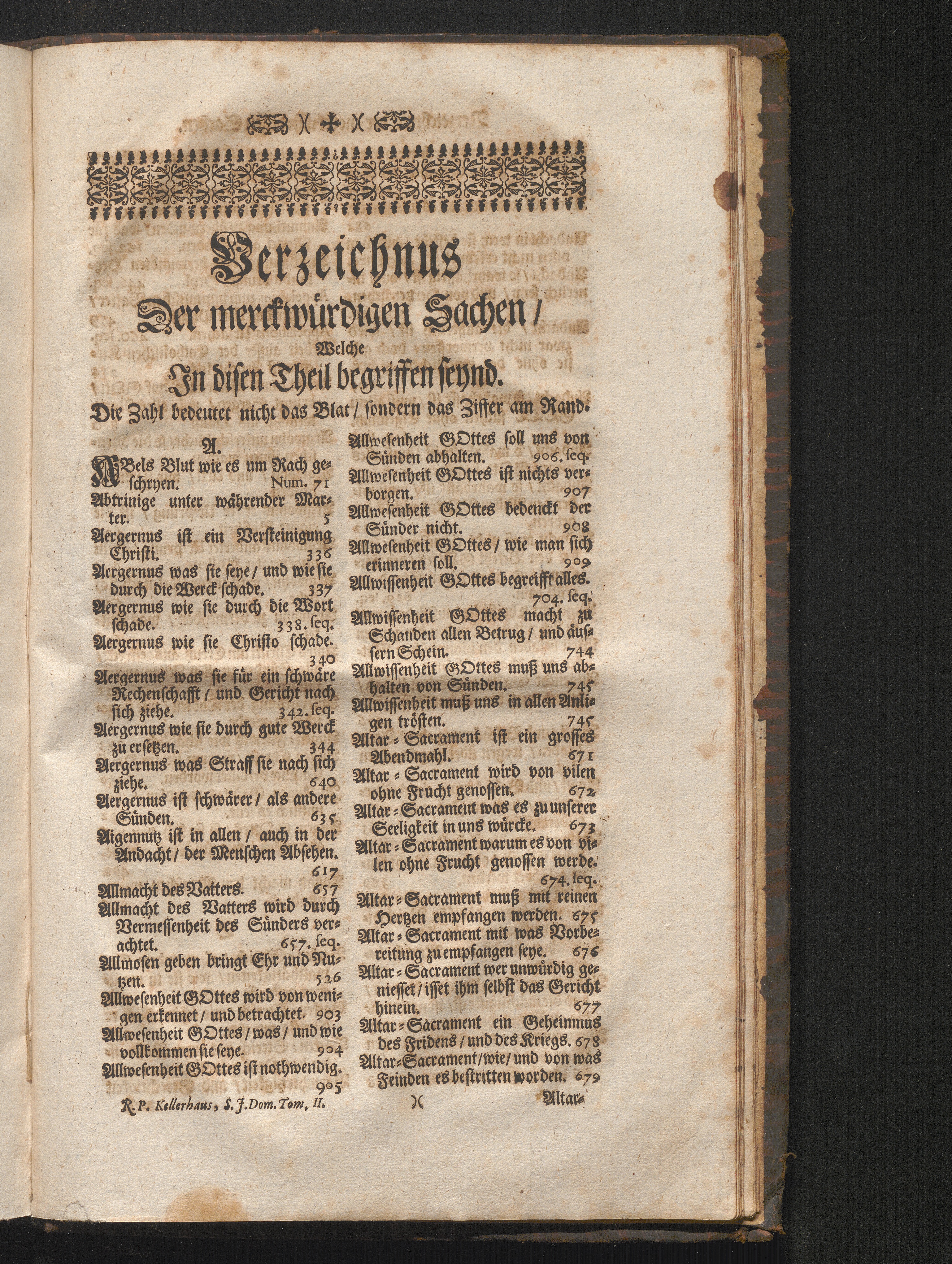 Verzeichnus Der merckwürdigen Sachen/ Welche Jn disen Theil begriffen seynd.