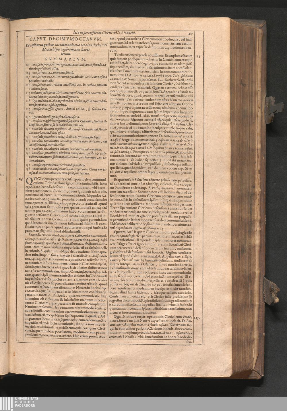 Cap. 18. De casibus, in quibus excommunicatio lata in Clerici, vel MOnachi percussorem[...]