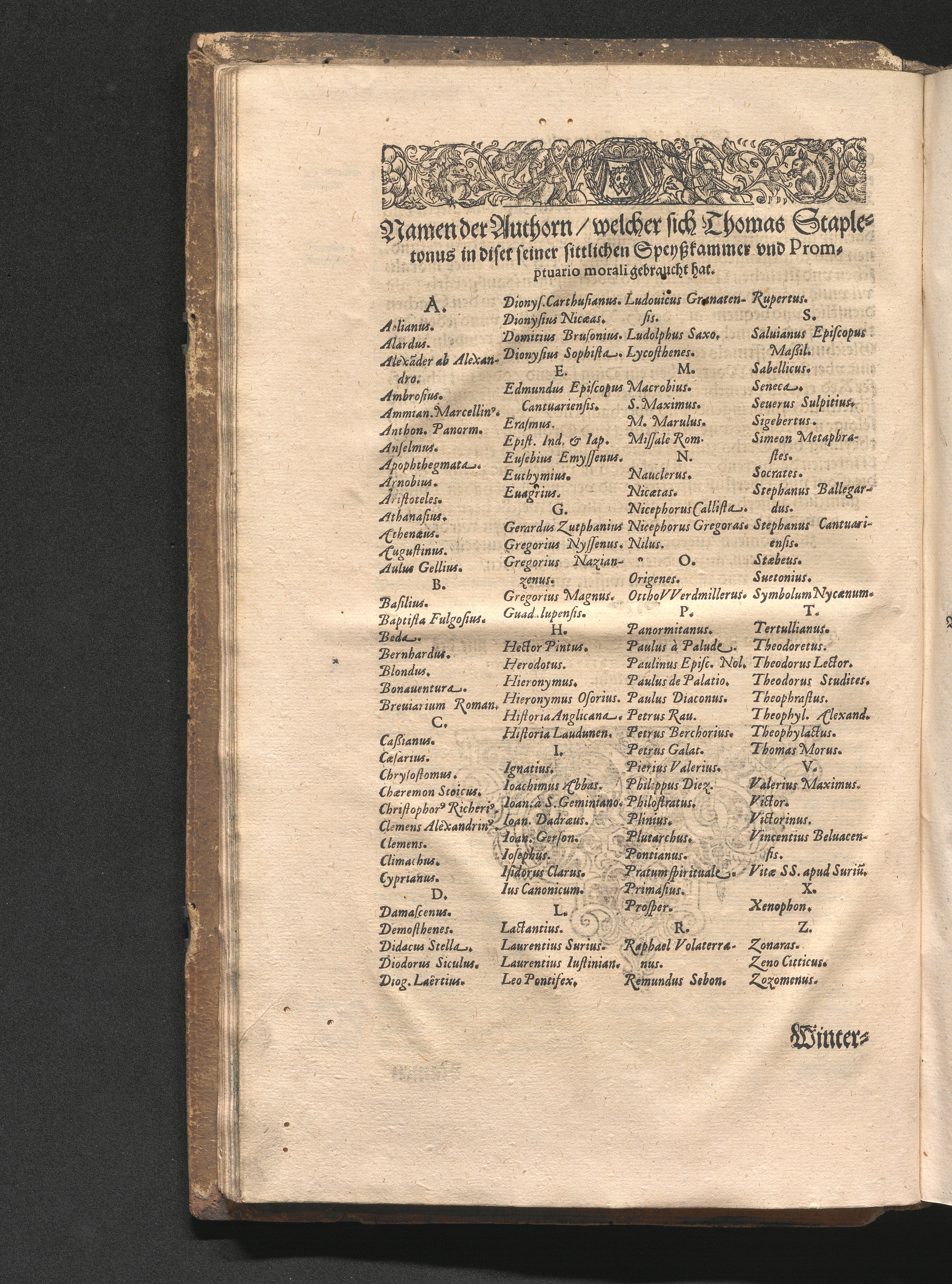 Namen der Authorn/ welcher sich Thomas Stapletonus in diser seiner sittlichen Speyßkammer[...]