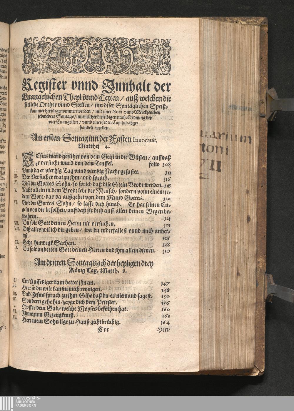 Register vnnd Jnnhalt der Euangelischen Theyl vnnd Texten/ auß welchen die sitliche[...]