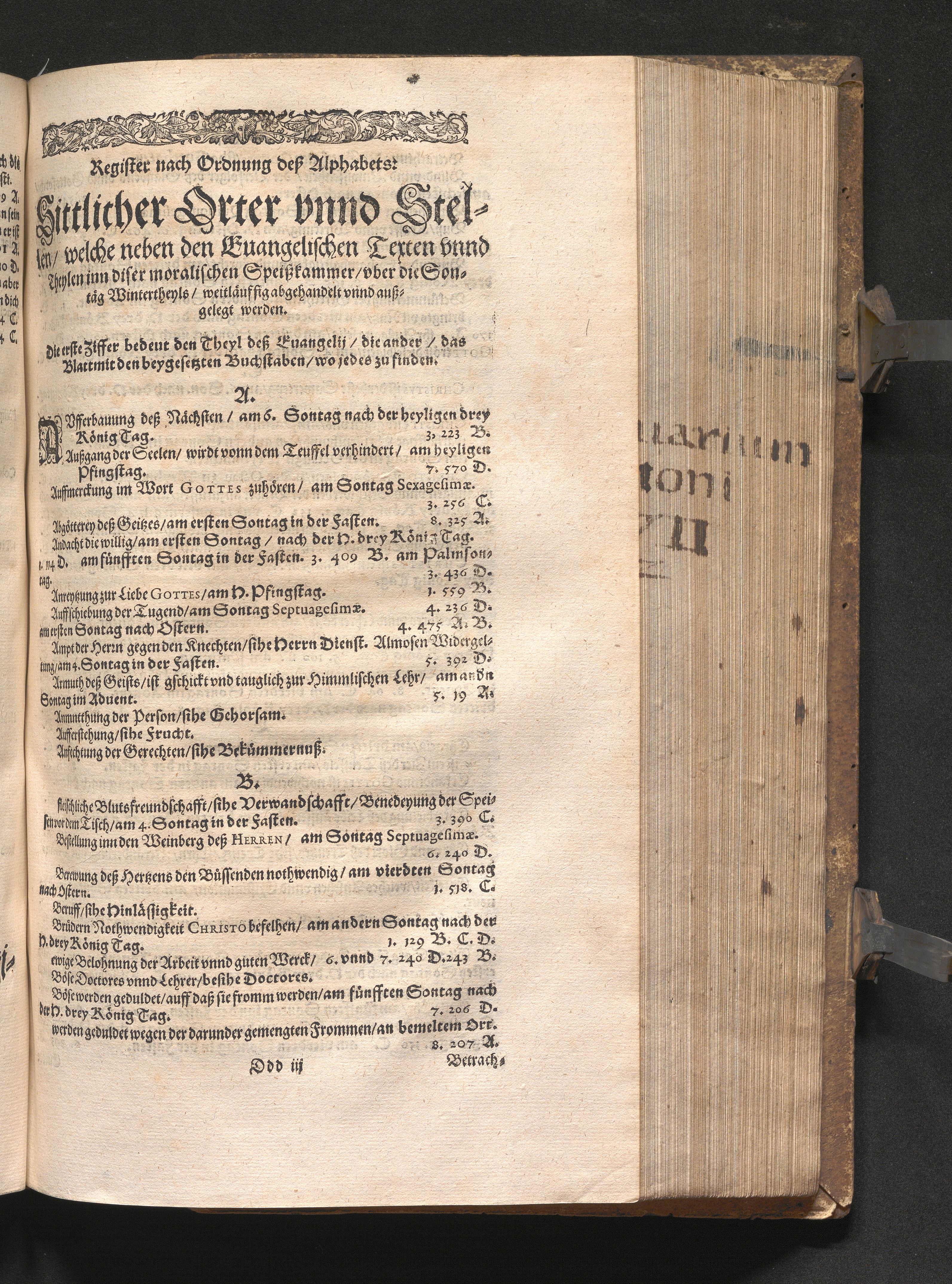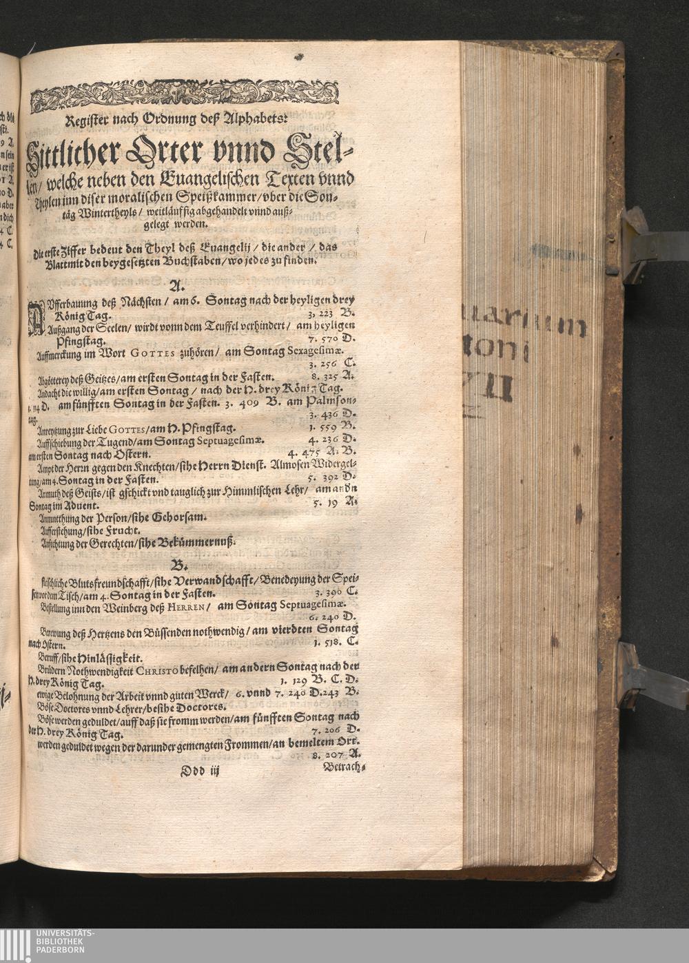 Register nach Ordnung deß Alphabets: Sittlicher Orter vnnd Stellen/ welche neben[...]