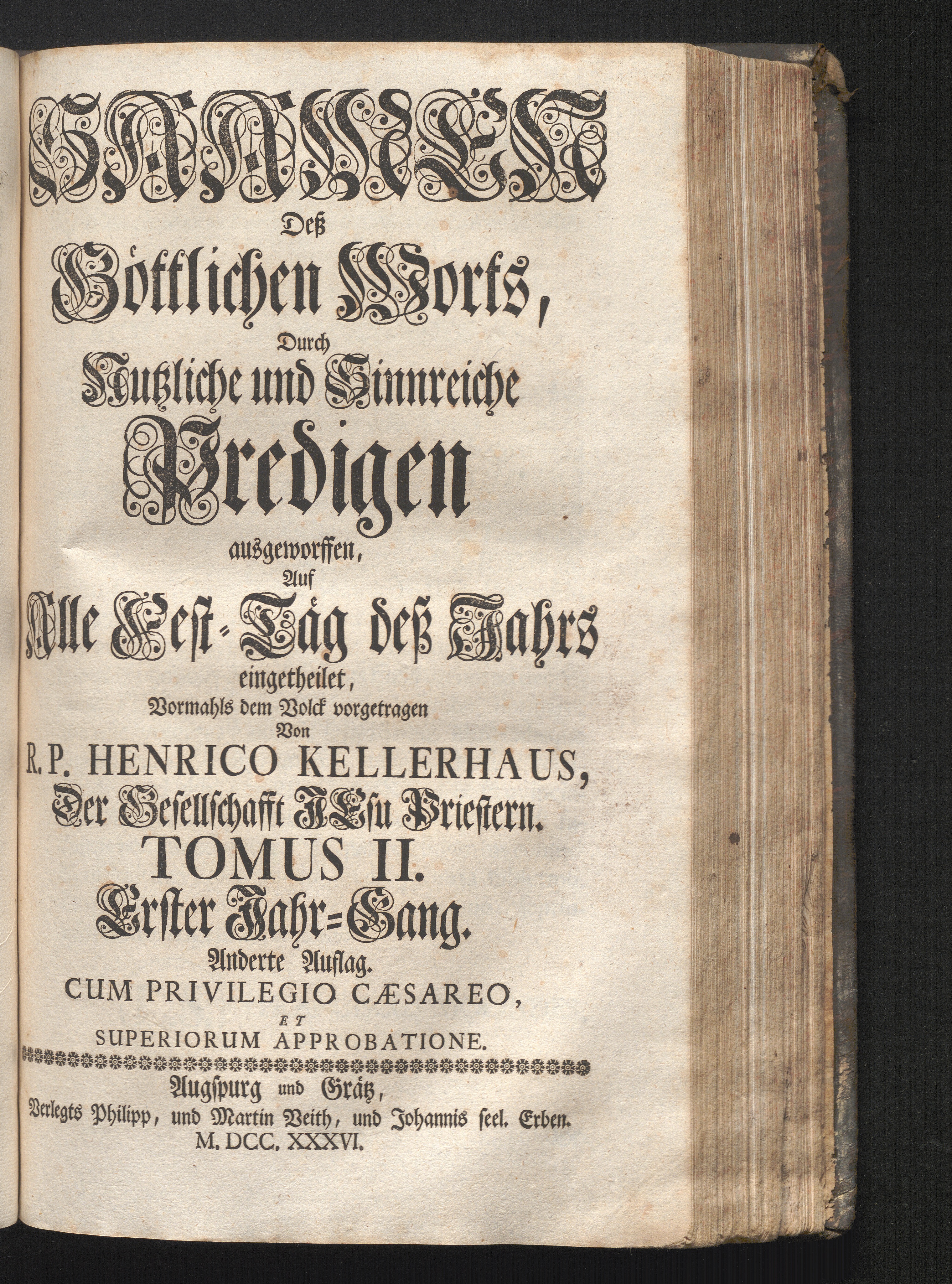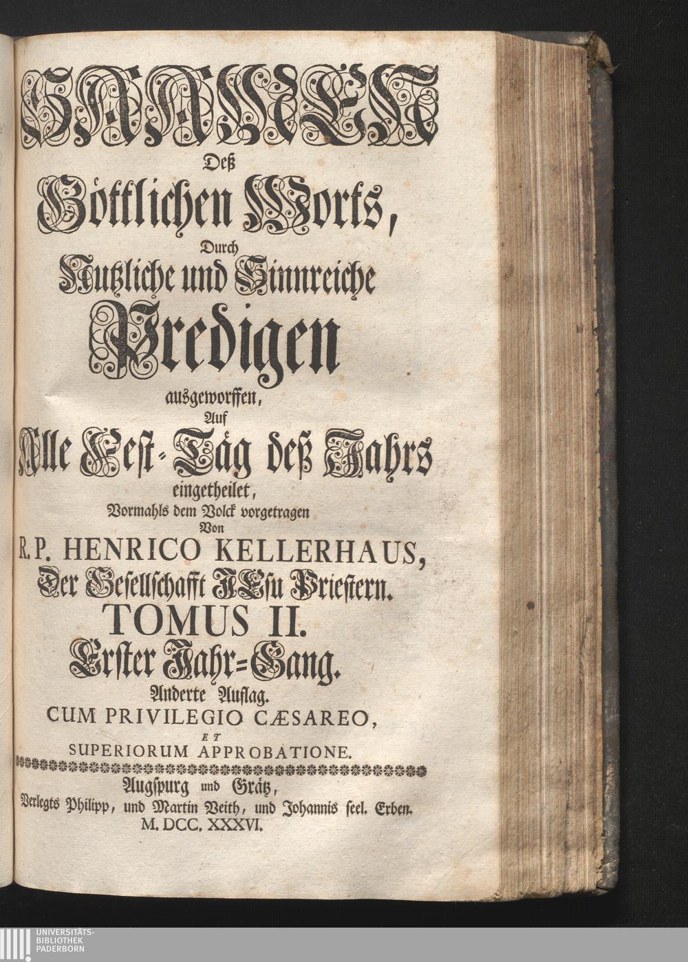 Jg. 1, Tomus II (1736) ... Auf Alle Fest-Täg deß Jahrs eingetheilet