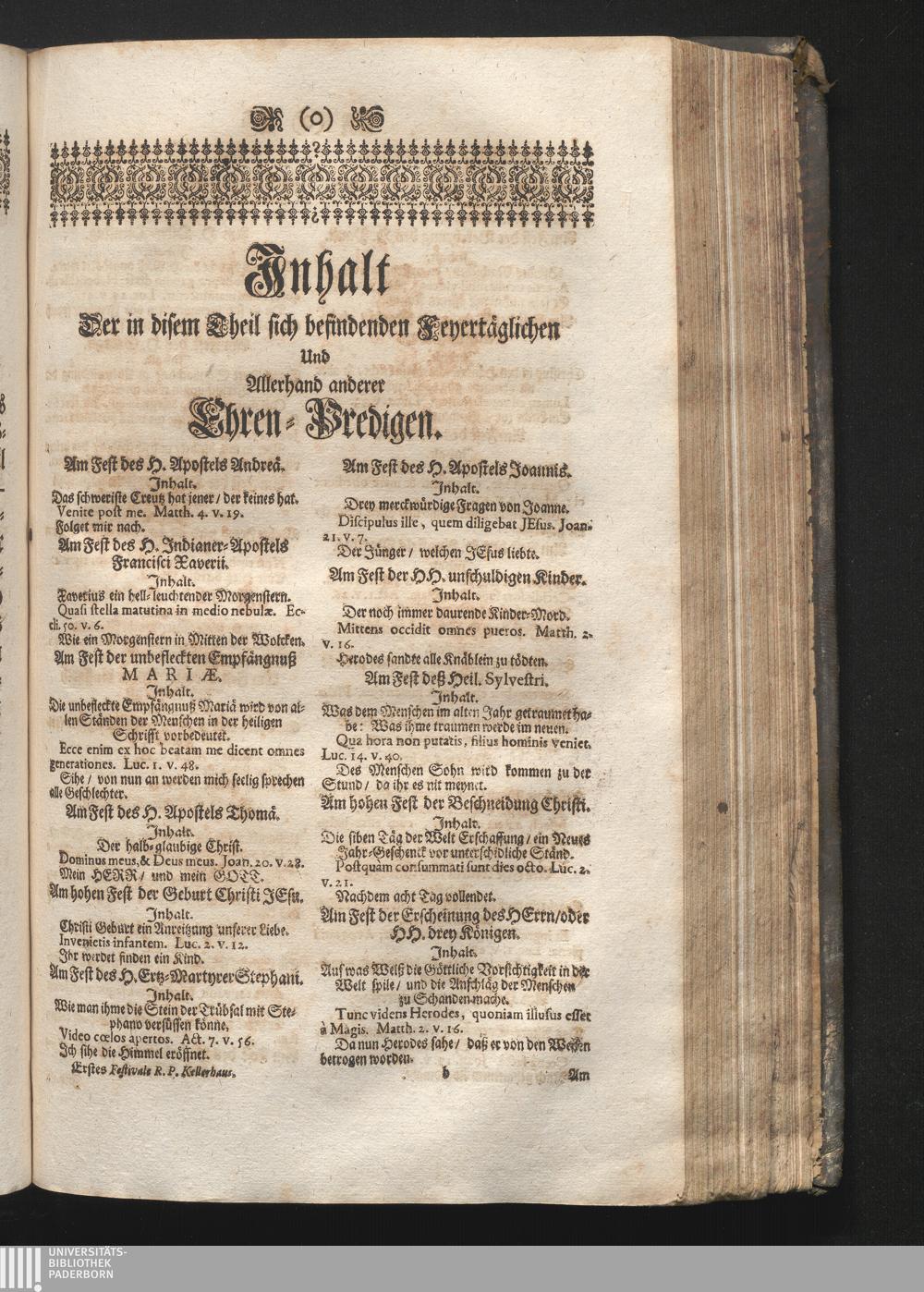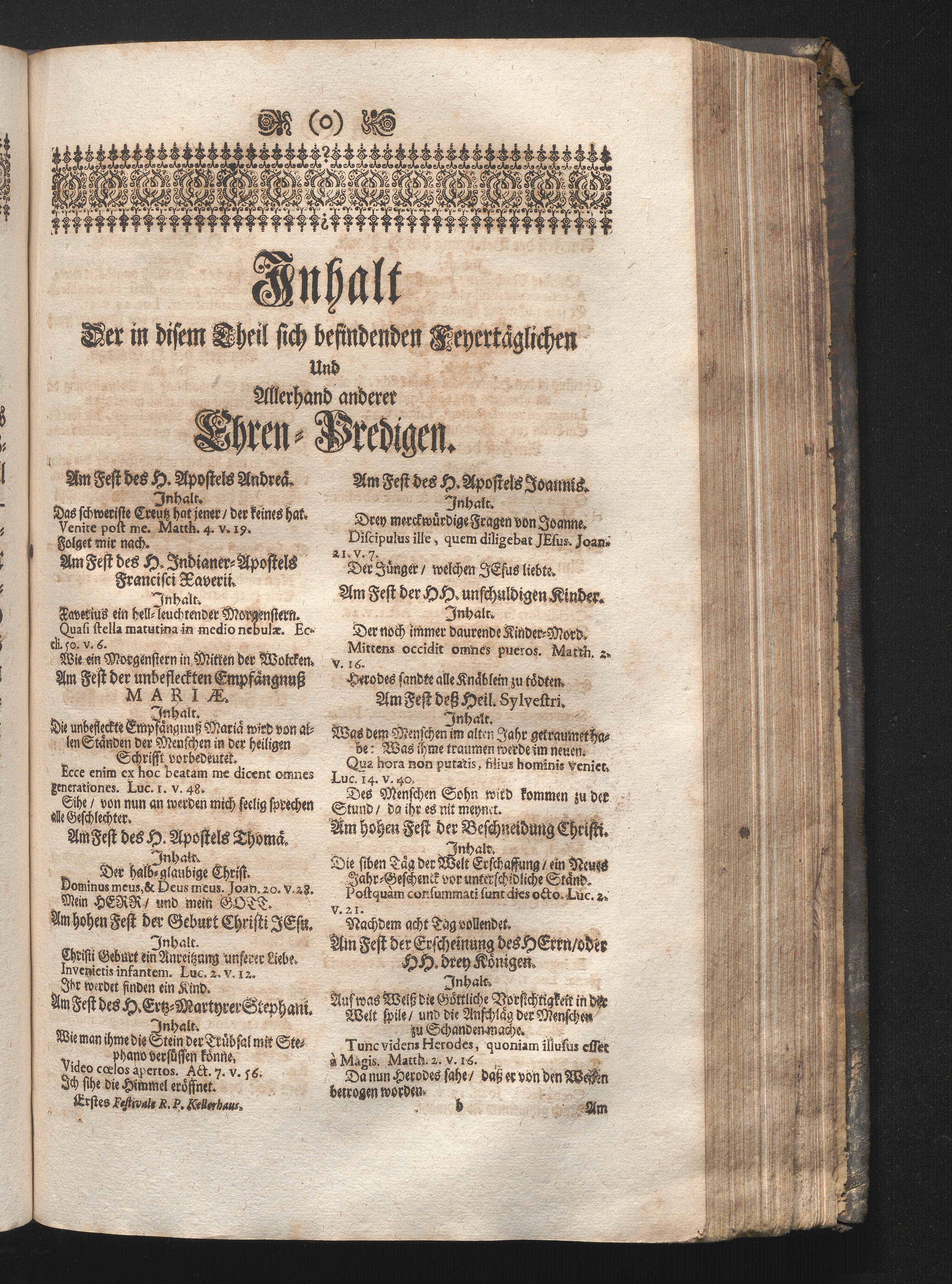 Jnhalt Der in disem Theil sich befindenden Feyertäglichen Und Allerhand anderer [...]