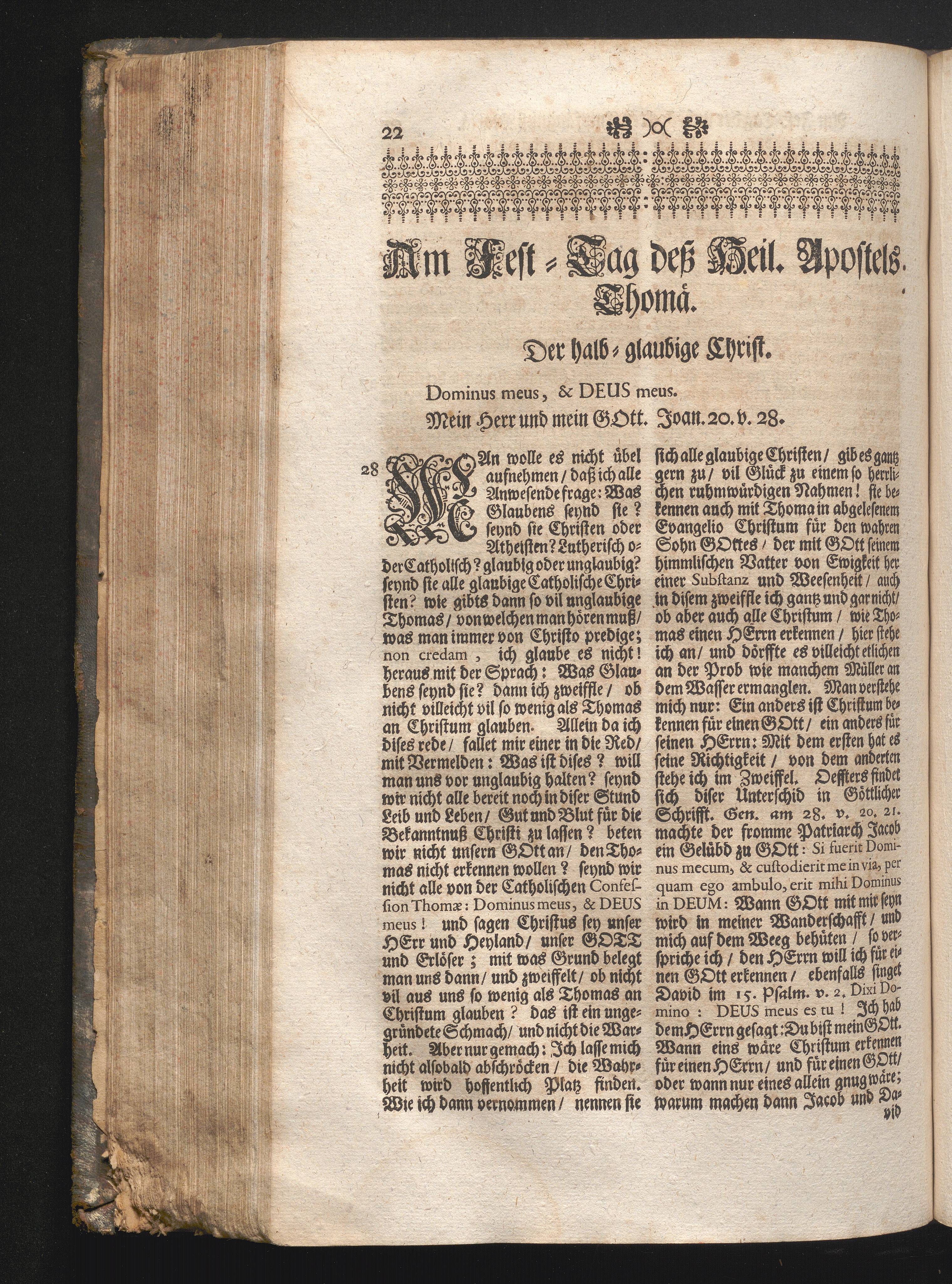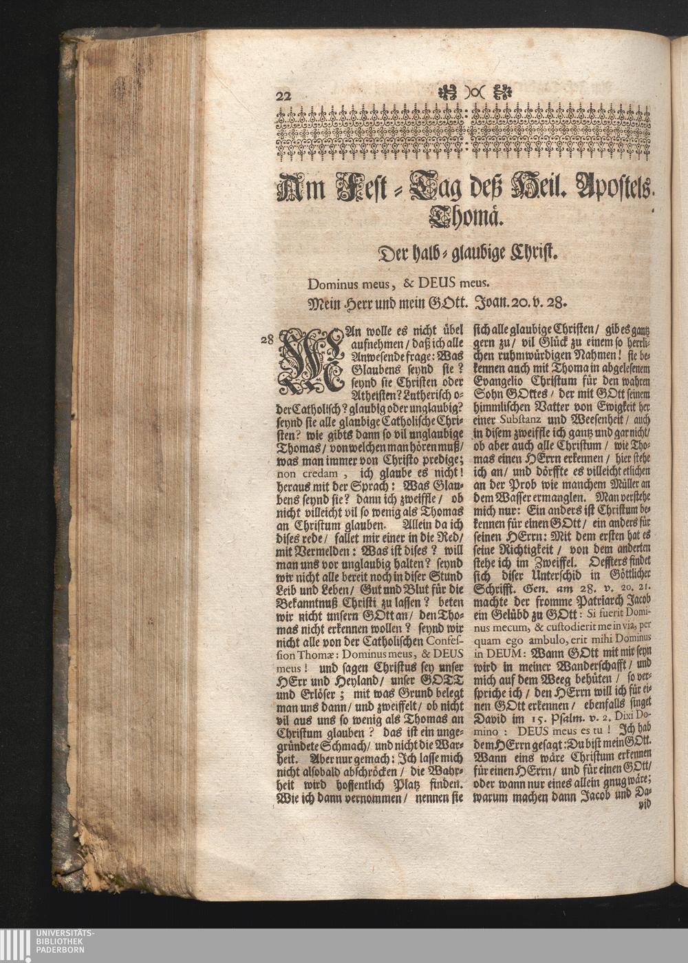 Am Fest des H. Apostels Thomä. Jnhalt. Der halb-glaubige Christ. Dominus meus, &[...]