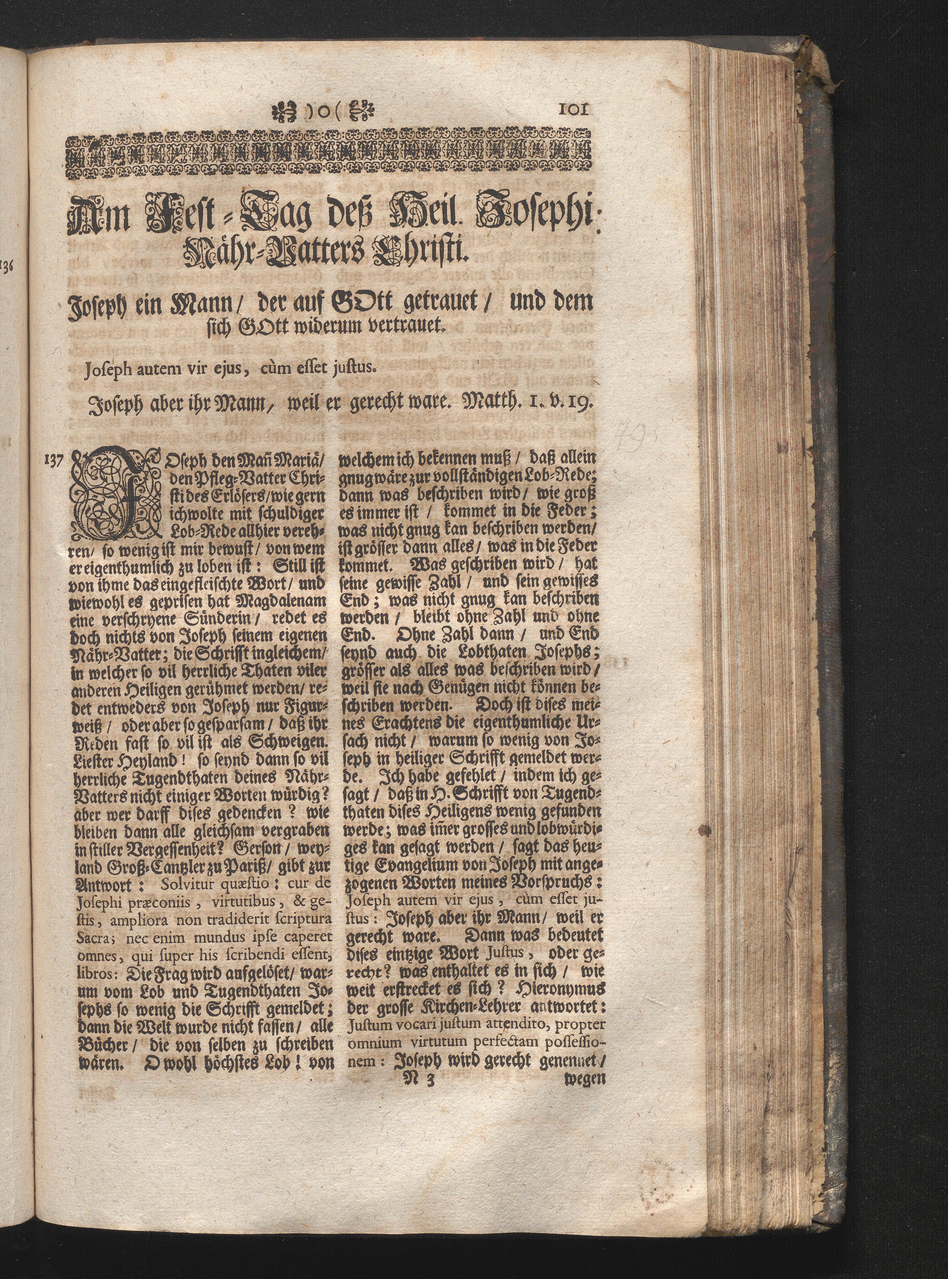 Am Fest des H. Josephs/ Nähr-Vatters Christi. Jnhalt. Joseph einMann/ der auf Gott[...]
