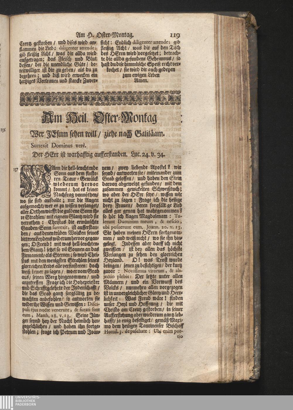 Am H. Oster-Montag. Jnhalt. Wer Jesum sehen will/ ziehe nach Galiläam. Surrexit Dominus[...]