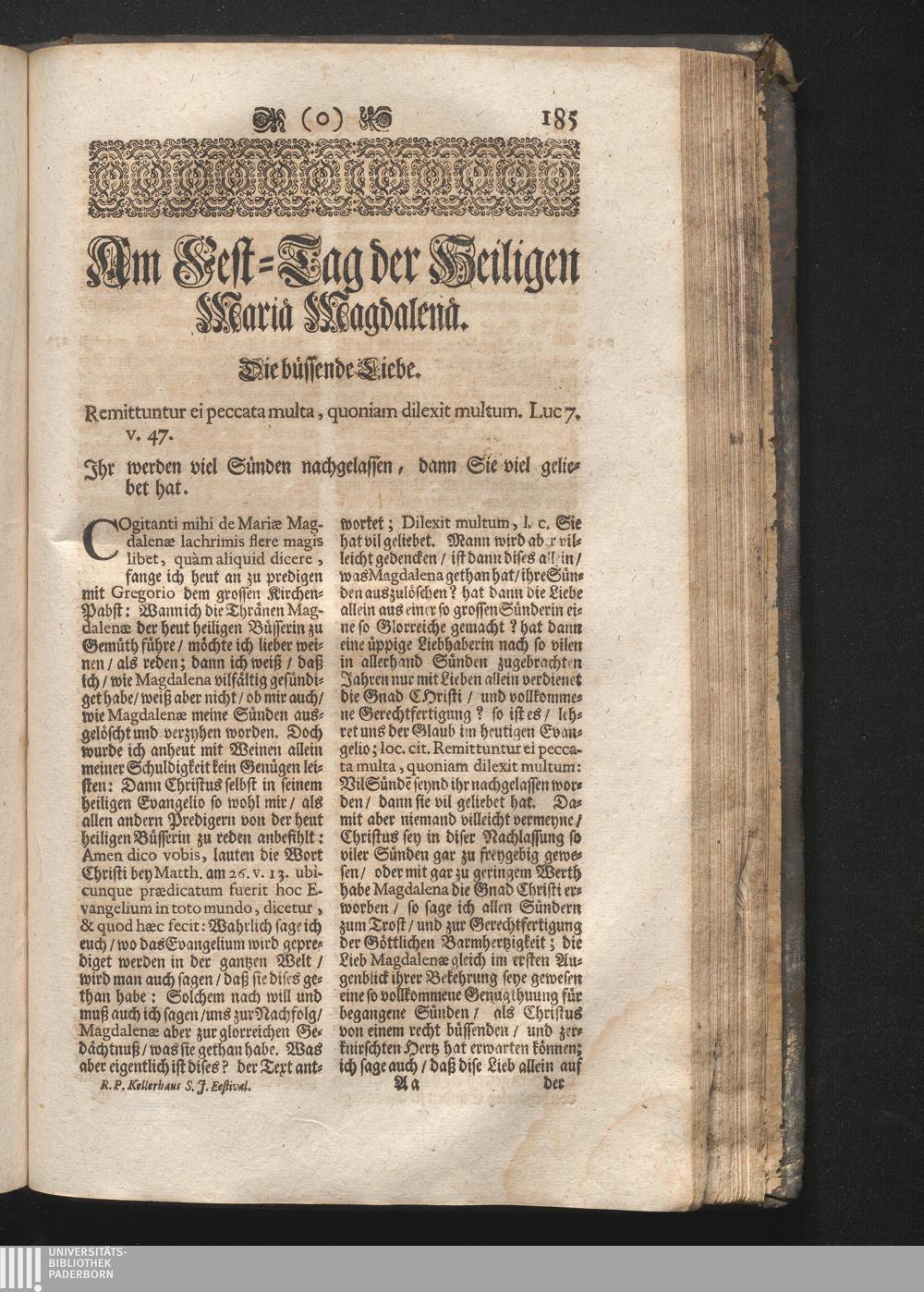 Am Fest der H. Mariä Magdalenä. Jnhalt. Die büssende Liebe. Remittuntur ei peccata[...]