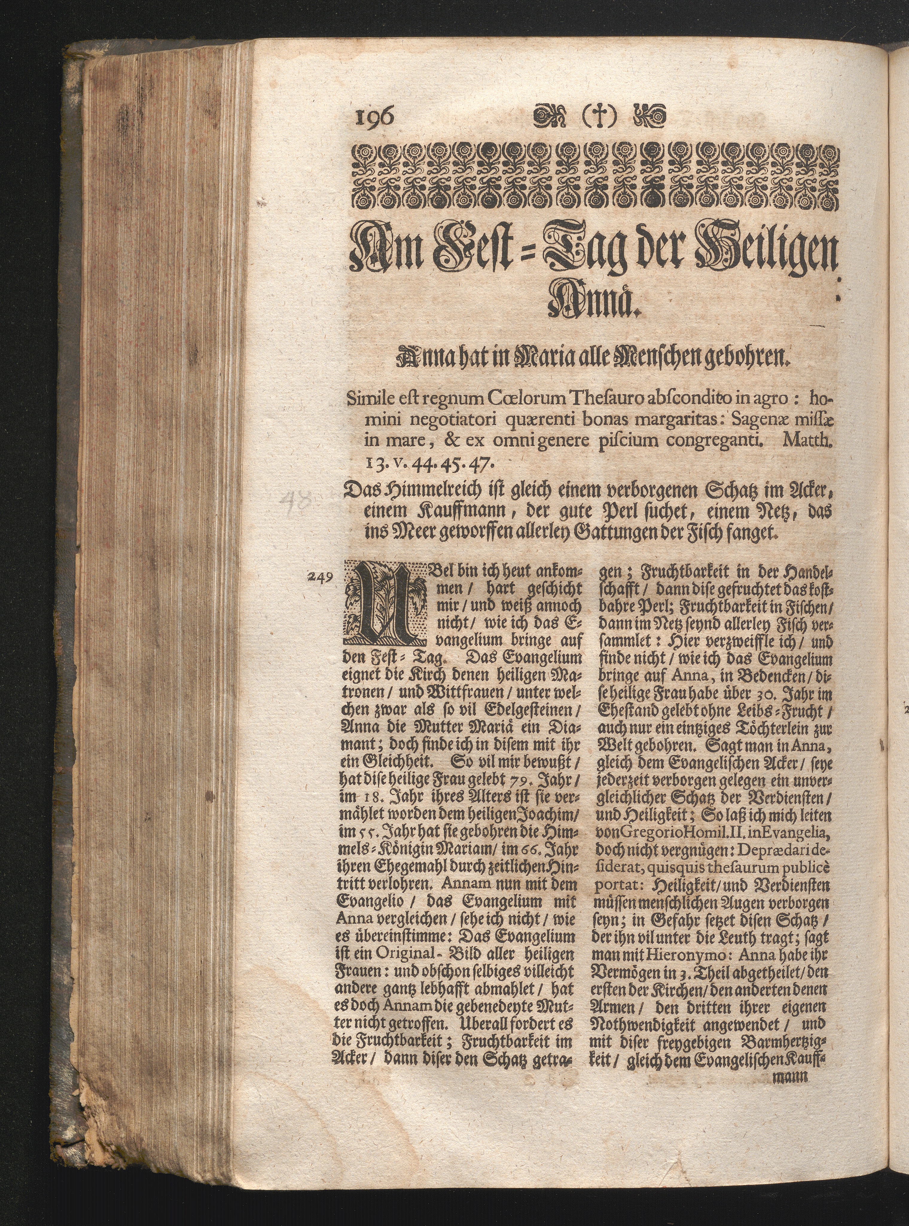 Am Fest der Heil. Annä. Jnhalt. Anna hat in Maria alle Menschen gebohren. Simile[...]