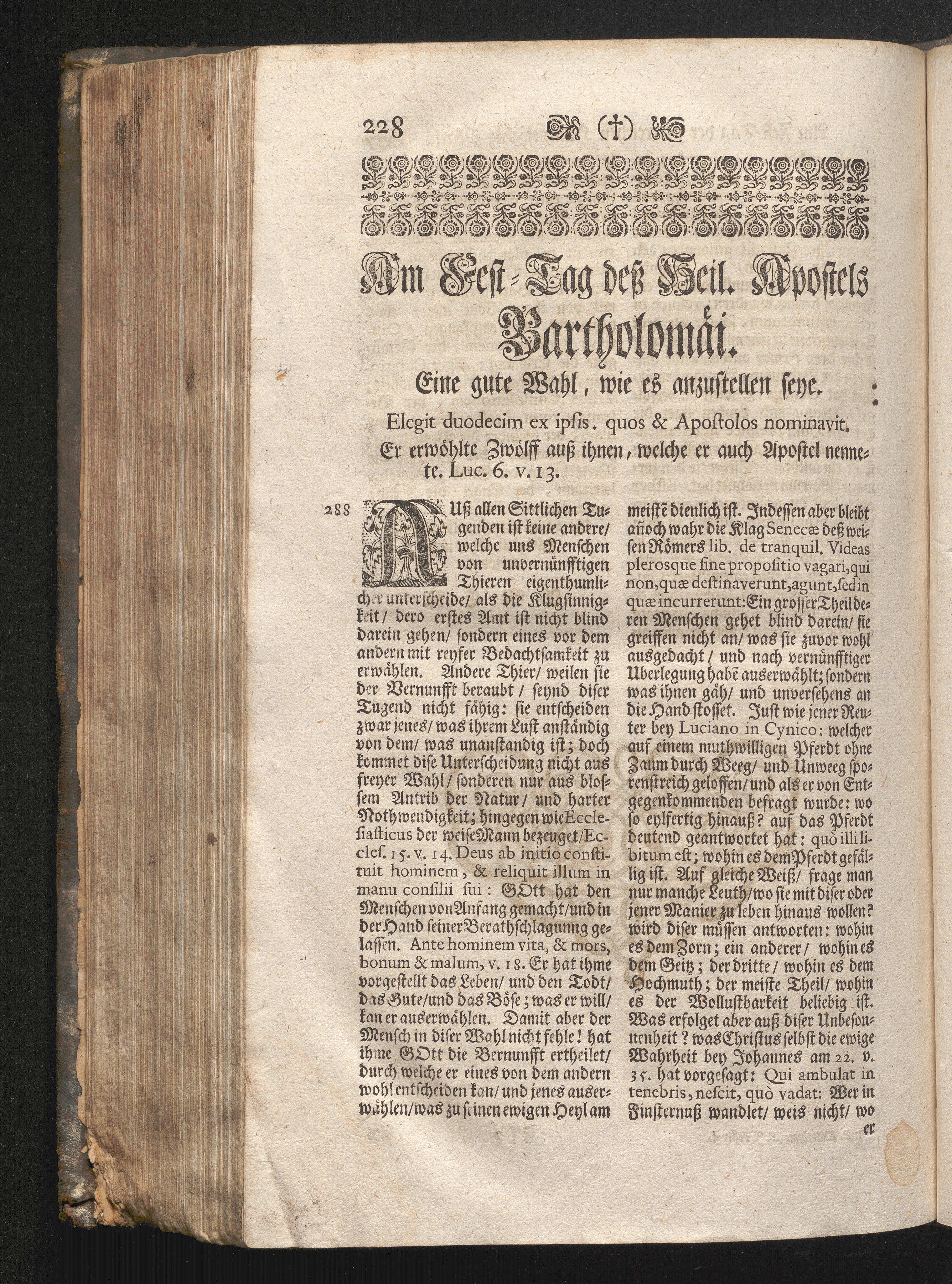 Am Fest des H. Apostels Bartholomæi. Jnhalt. Eine gute Wahl wie sie anzustellen seye.[...]
