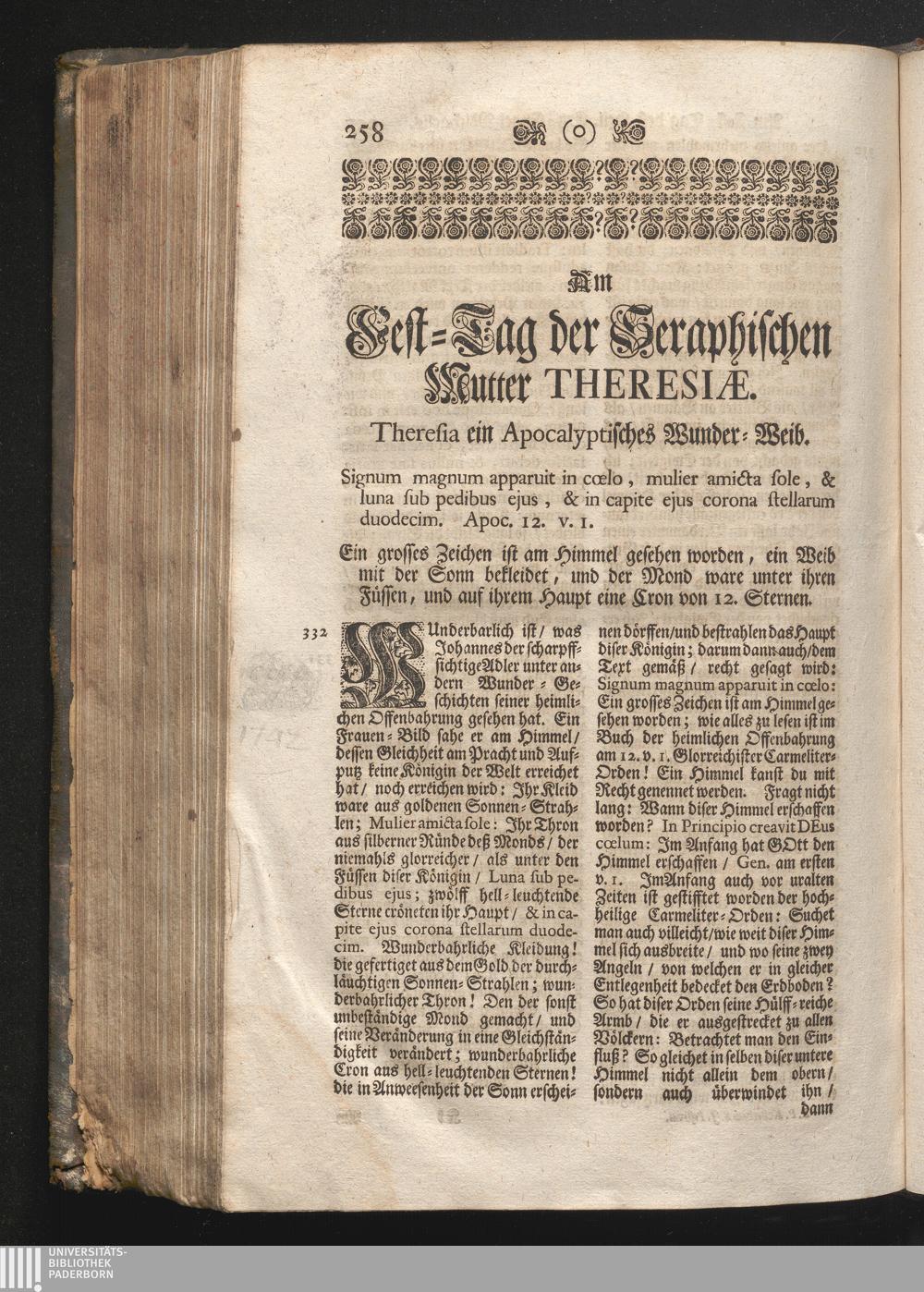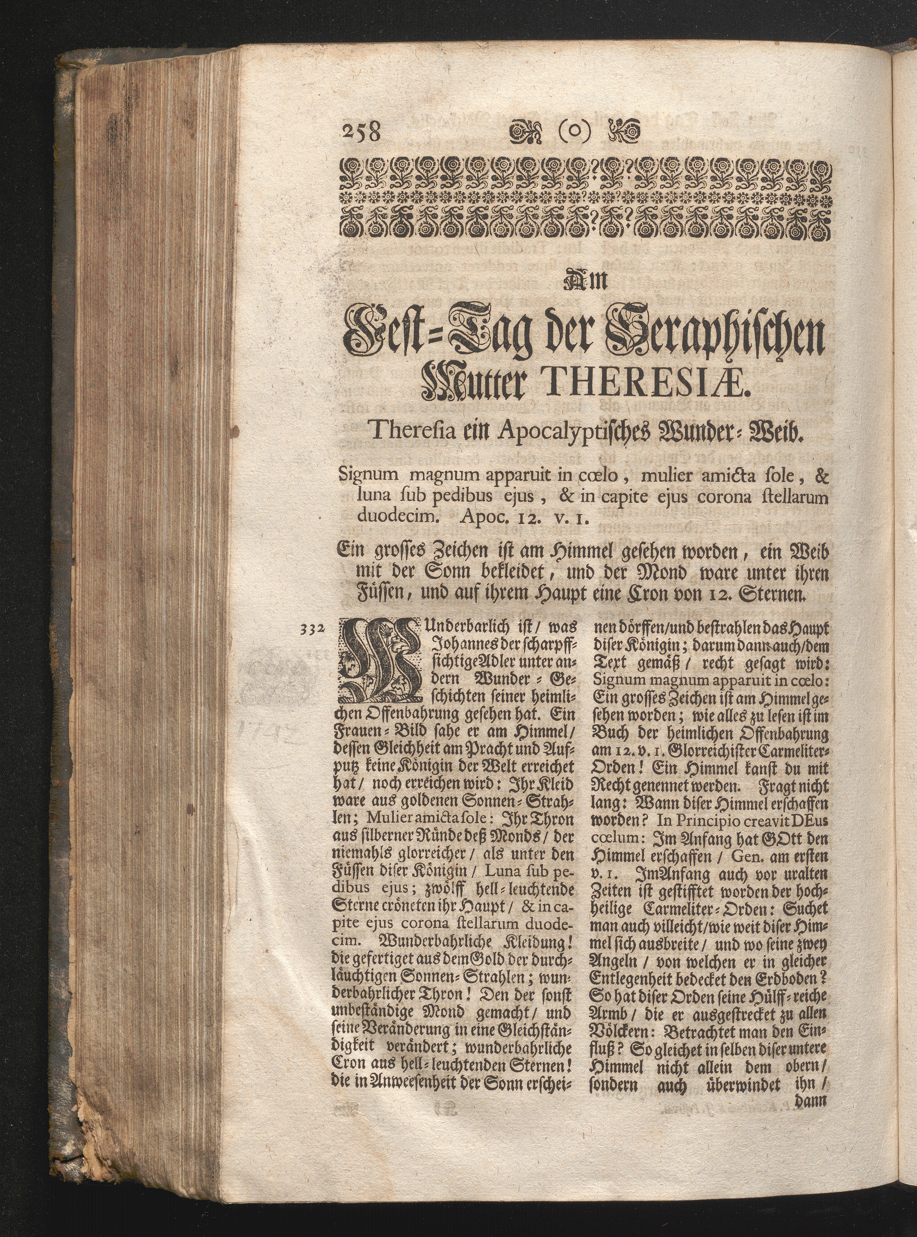 Am Fest der Seraphischen Mutter Theresiæ. Jnhalt. Theresia ein Apocalyptisches Wunder-Weib.[...]