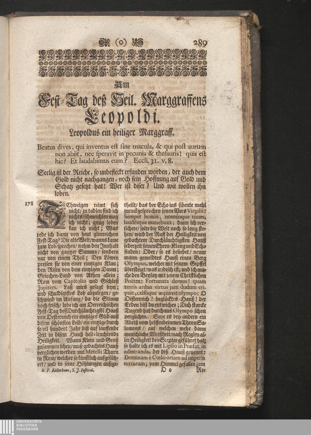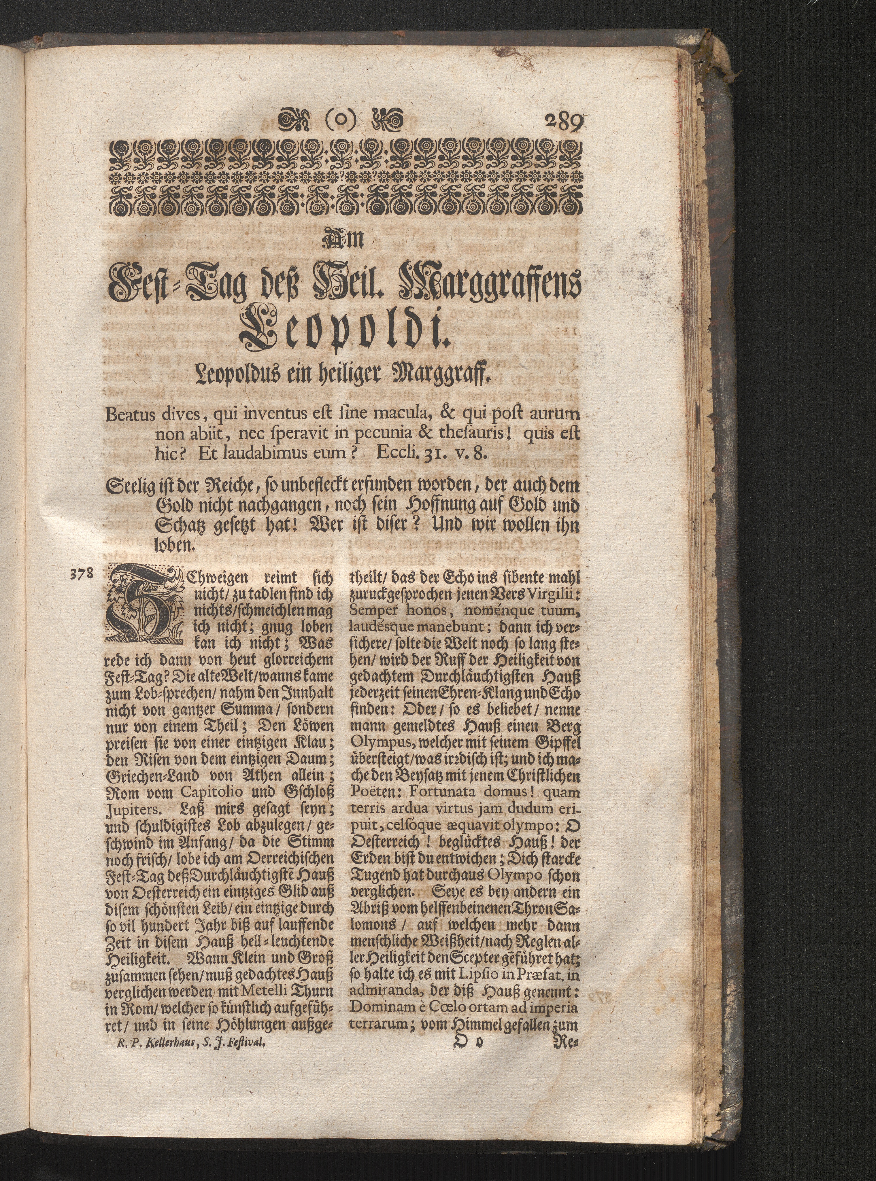 Am Fest des H. Marggrafens Leopoldi. Jnhalt. Leopoldus ein heiliger Marggraf. Beatus[...]