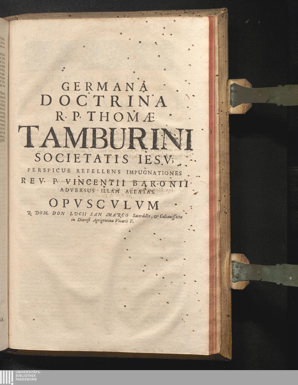 R. P. Thomæ Tamburini È Societate Jesu Opera Omnia : Qvibvs Continentvr Explicatio Decalogi, De Confessione. De Communione. De Sacrificio Missæ. De Sacramentis. De Contractibus. De Irregularitate. De Bulla Cruciatæ. Et Germana Doctrina ejusdem authoris, à nonnullis impugnationibus vindicata
