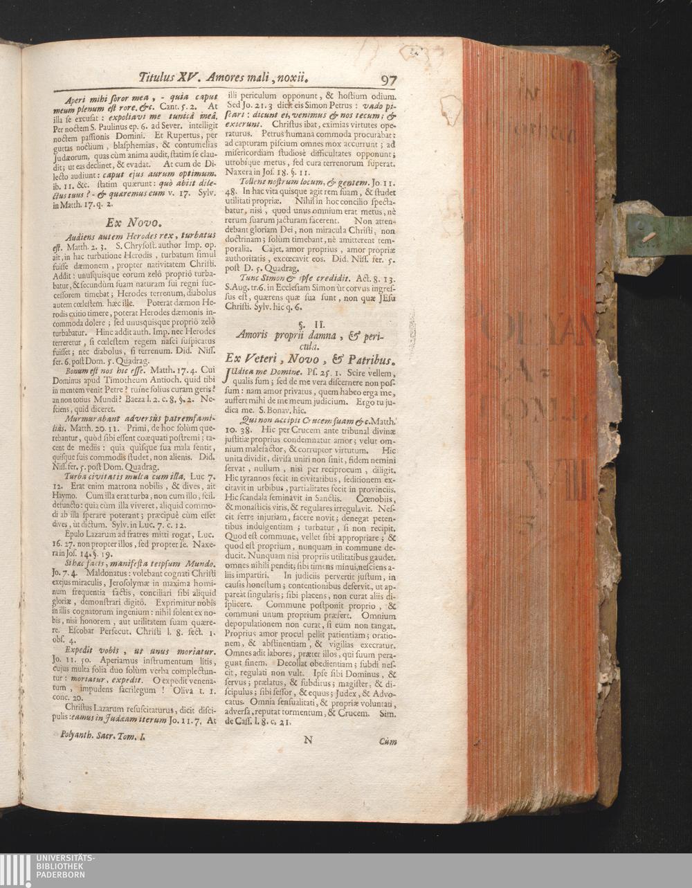 §. 2. Amoris proprij damna, & pericula. Ex Veteri, Novo, & Patribus.
