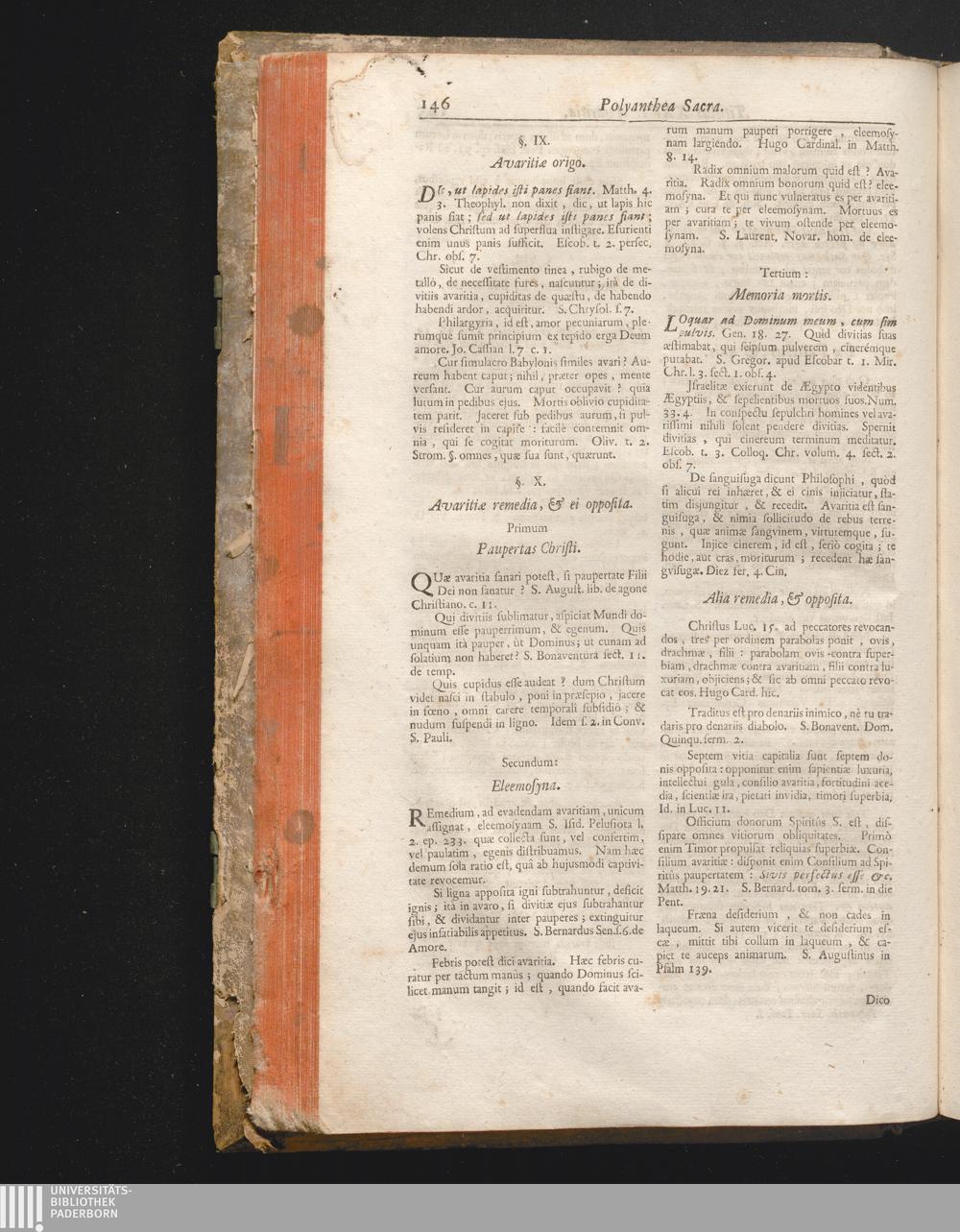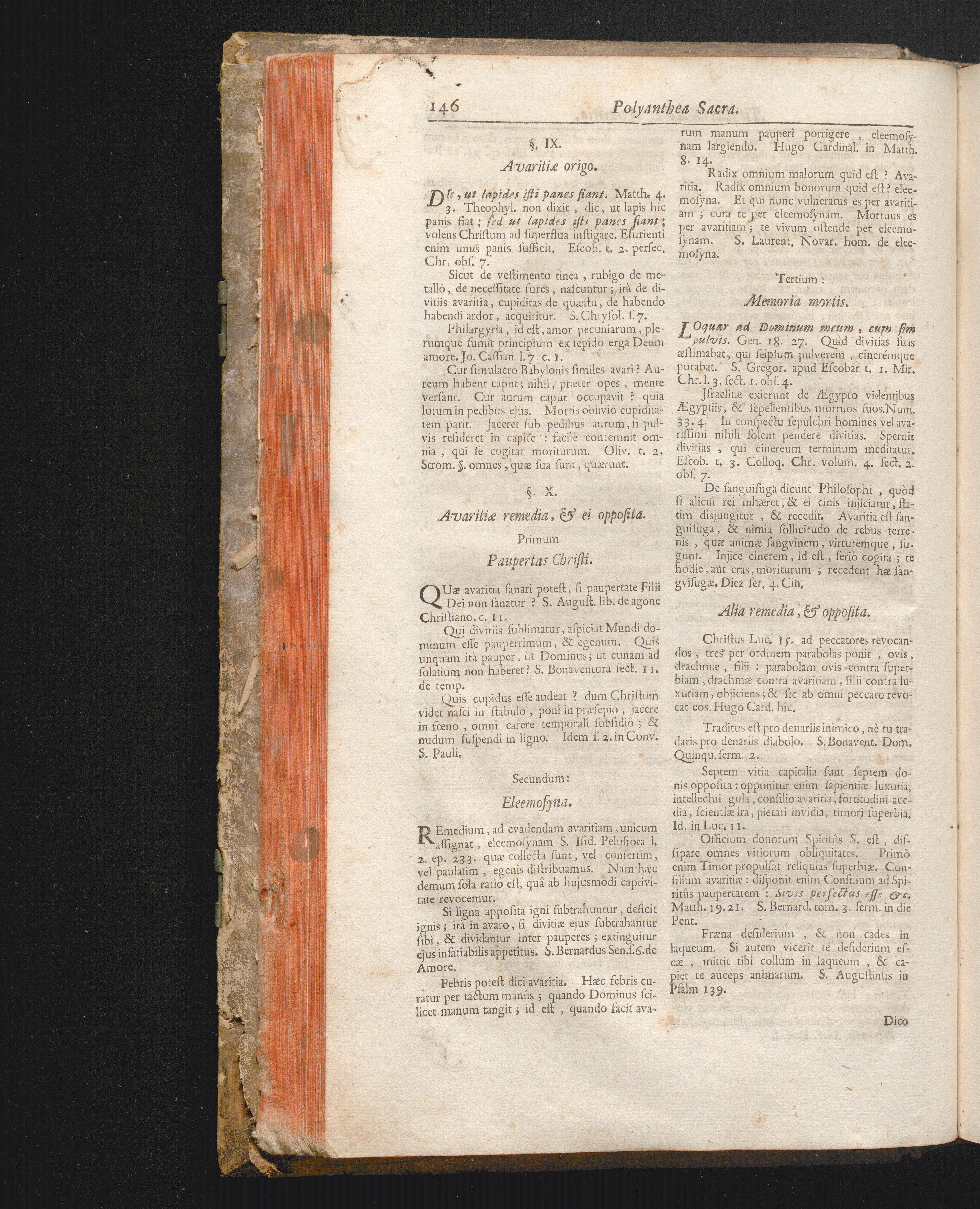 §. 10. Remedia, & ei opposita. Paupertas Christi. Eleemosyna. Memoria mortis.