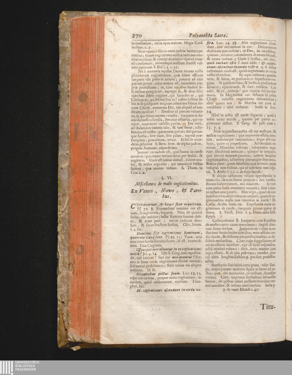 §. 6. Miscellanea de malis cogitationibus. Ex Vet. Nov. Pat.