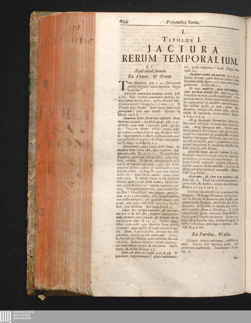 Titulus I. Jactura rerum Temporalium.