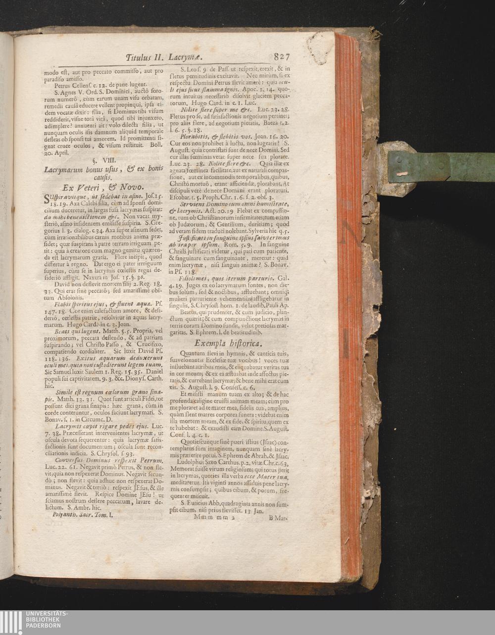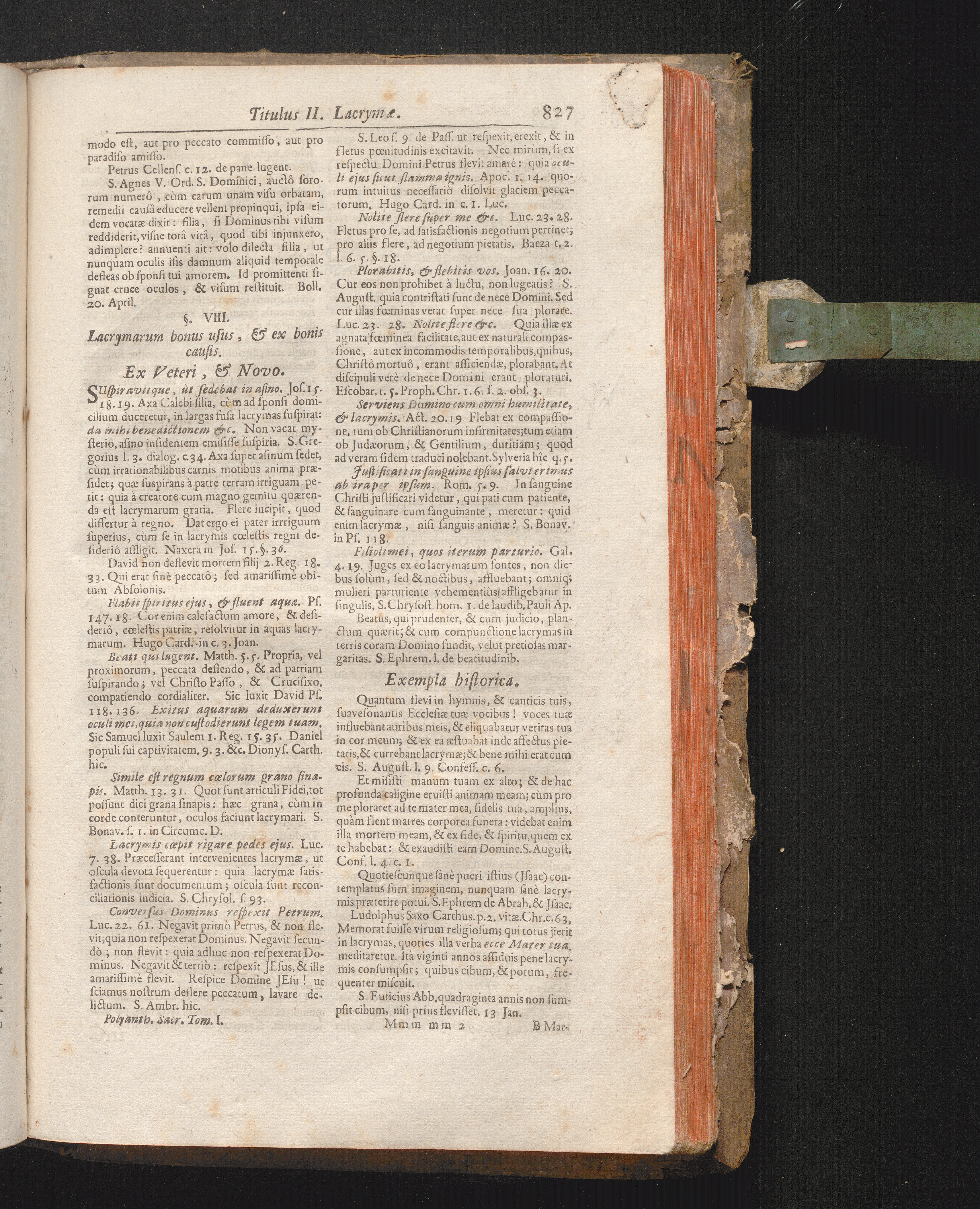 §. 8. Lacrymarum bonus usus, & ex bonis causis. Ex Veteri, & Novo. Exempla histo[...]