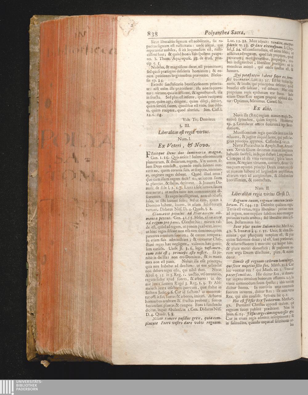 §. 3. Liberalitas est regia virtus. N. 1. Ex Veteri, & Novo. Ex aliis. N. Liberalitas[...]