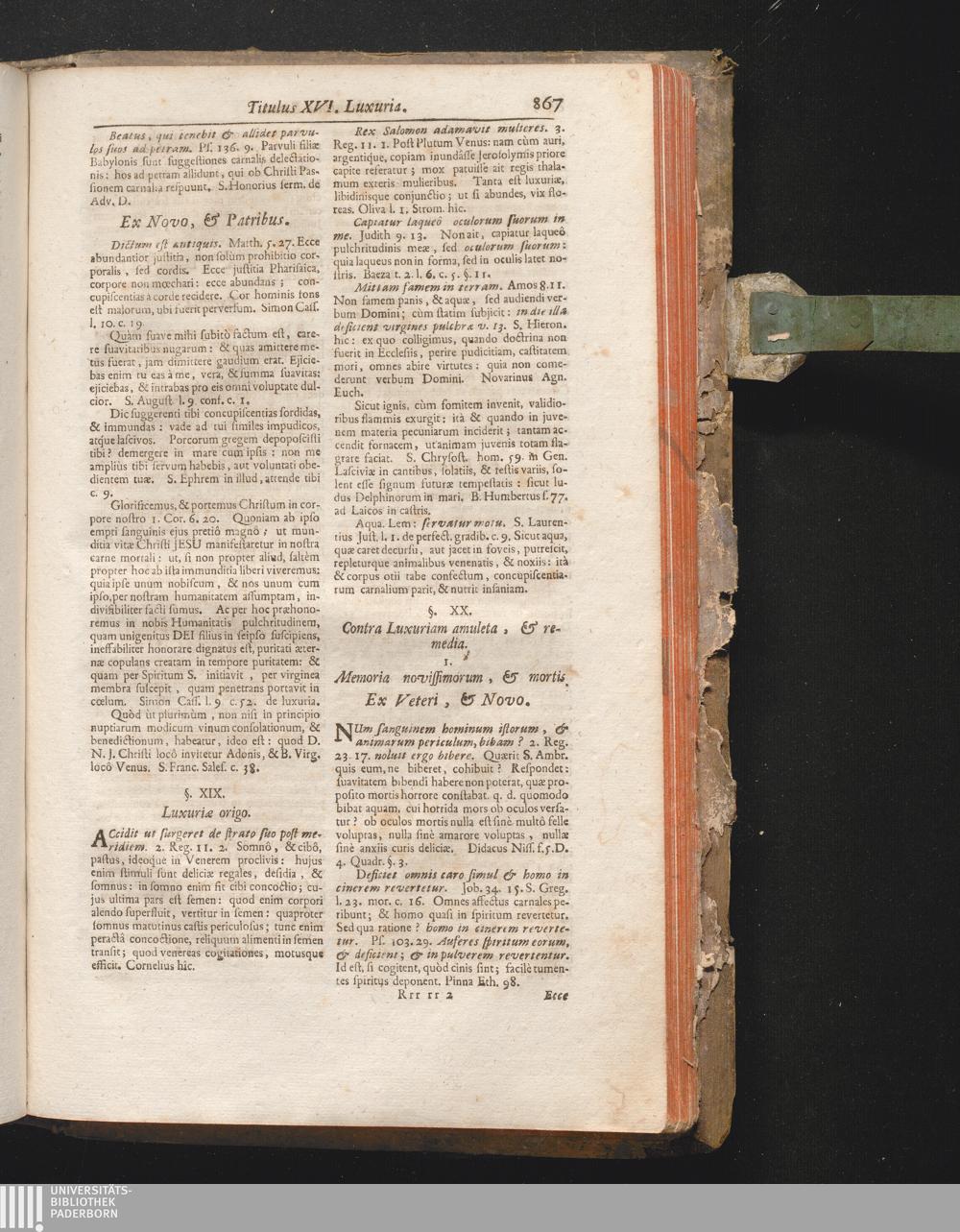 §. 20. Contra Luxuriam amuleta, & remedia. 1. Memoria novissimorum, & mortis. Ex[...]