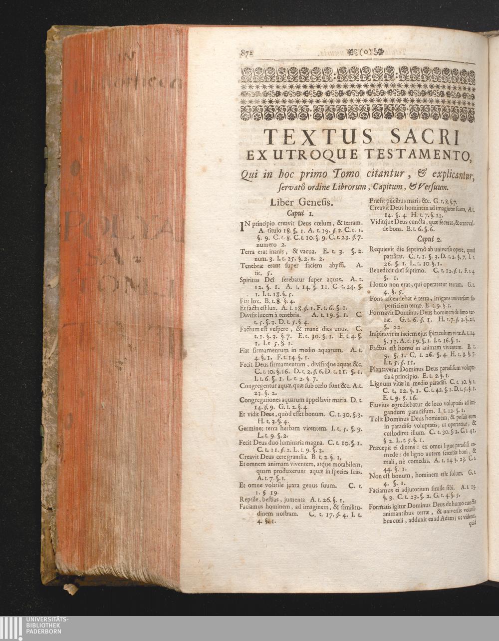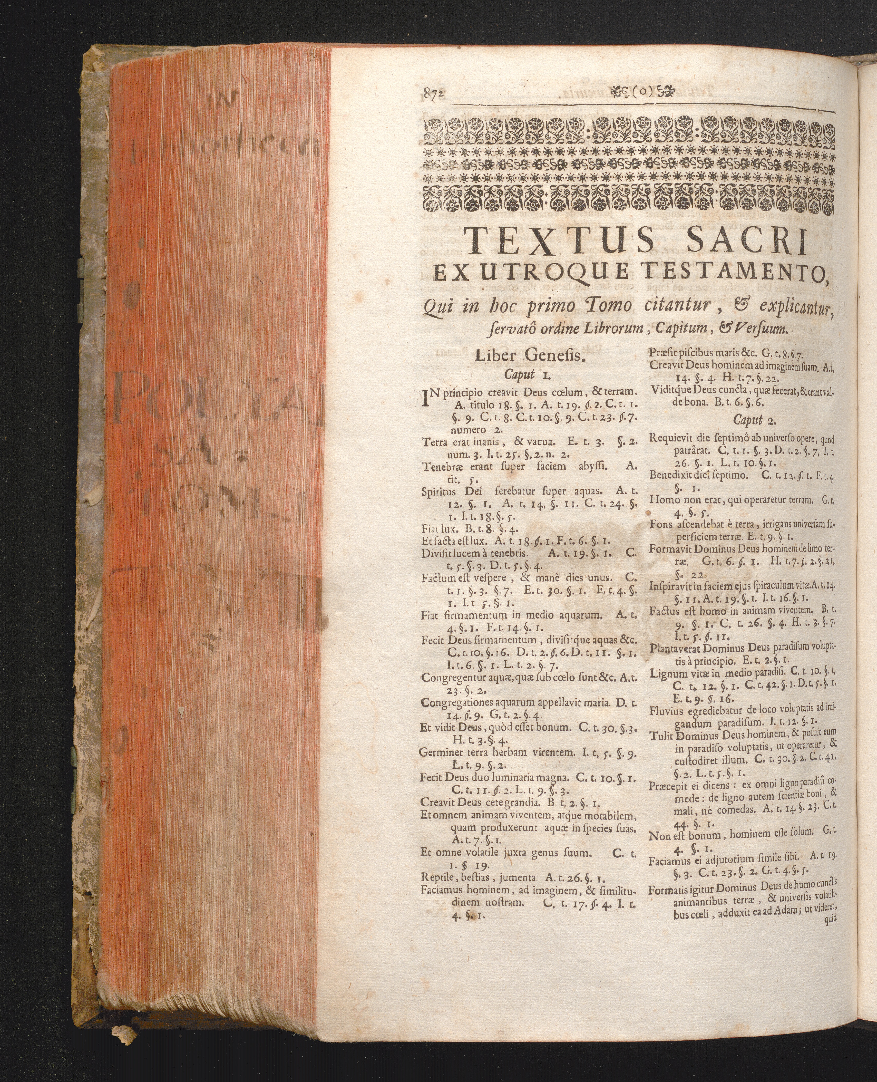 Textus Sacri Ex Utroque Testamento, Qui in hoc primo Tomo citantur, & explicantur,[...]