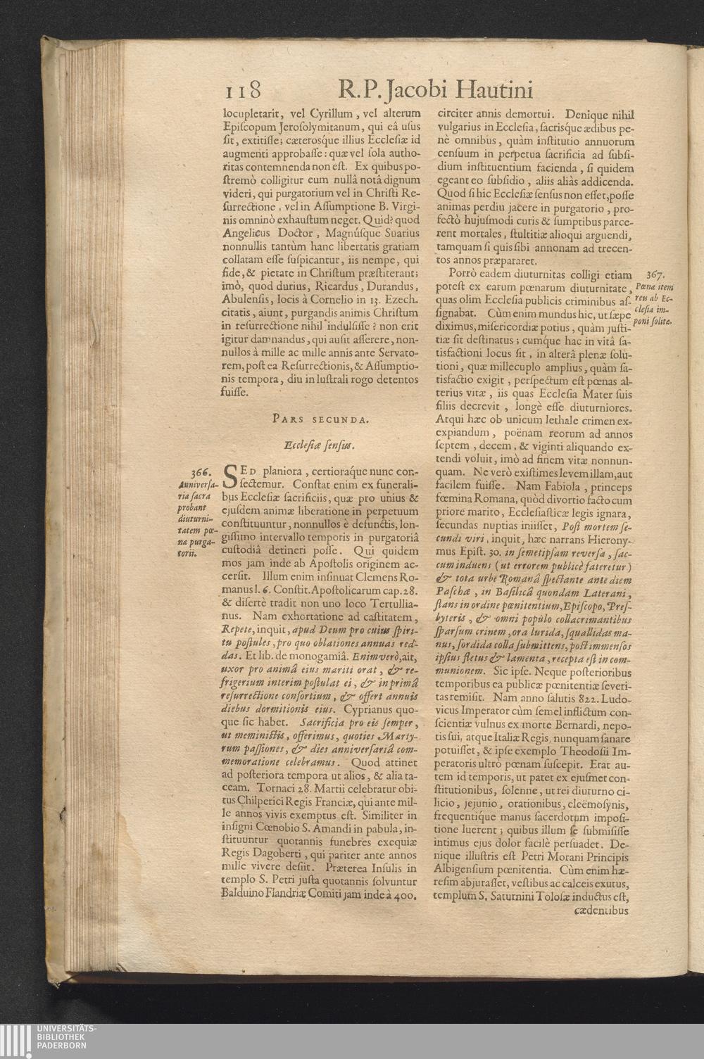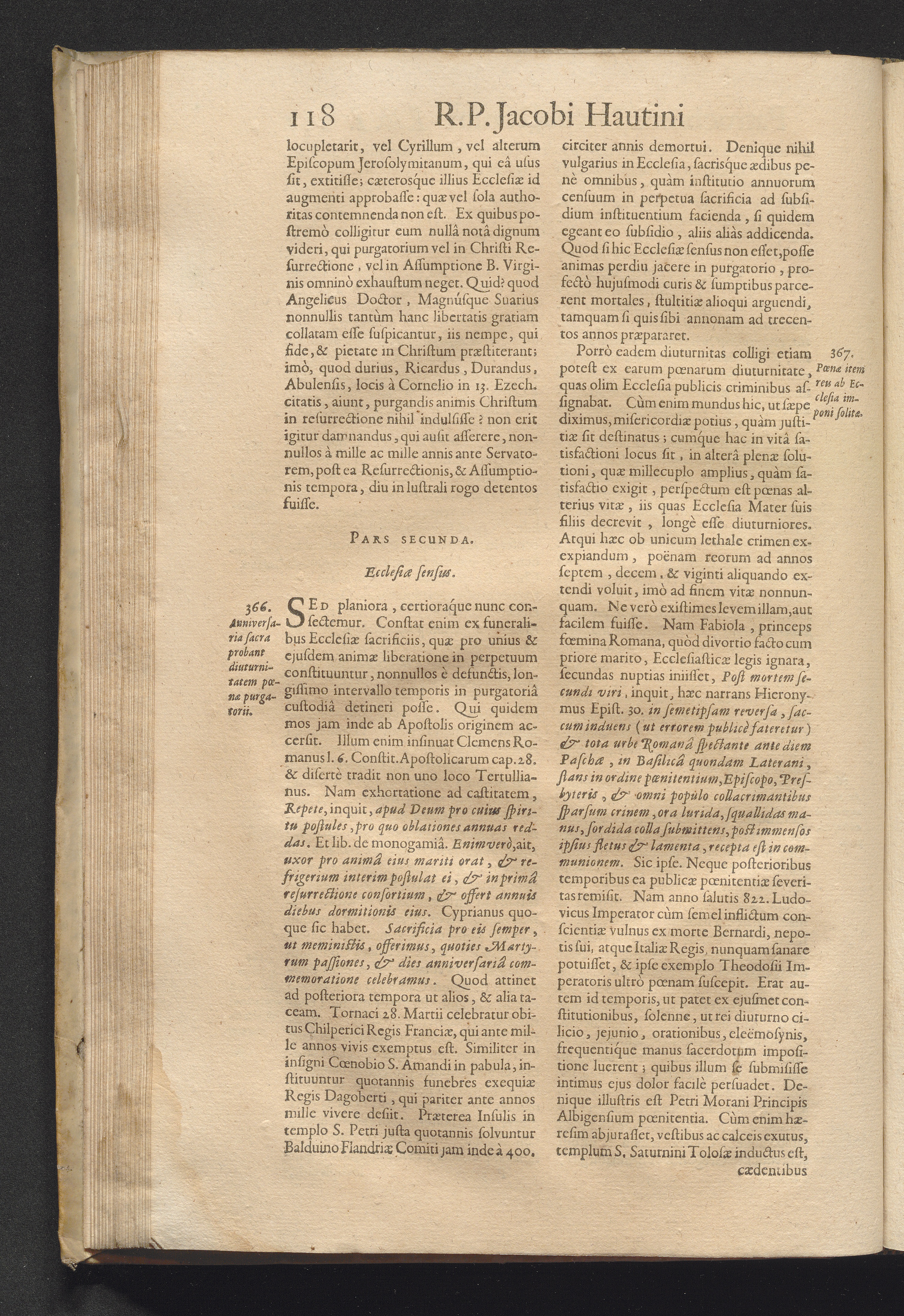 Patrocinivm Defvnctorvm : Tribus Libris Exaratum: Qvorvm Primvs Veritatem, Acerbitatem Ac Diuturnitatem Lustralium Cruciatuum; Alter Cavsas Vita Functis Opitulandi; Tertius Modos Complectitur. Tractatus Est Vivis Aeque Ac Mortuis Perutilis. Ex quo materia funebris in singulas anni Dominicas, & in decem Octavas Concionatoribus depromitur ... / A R. P. Iacobo Havtino Soc. Iesv Sacerdote