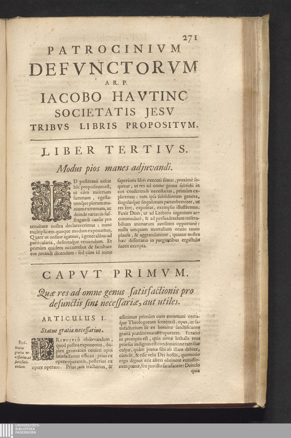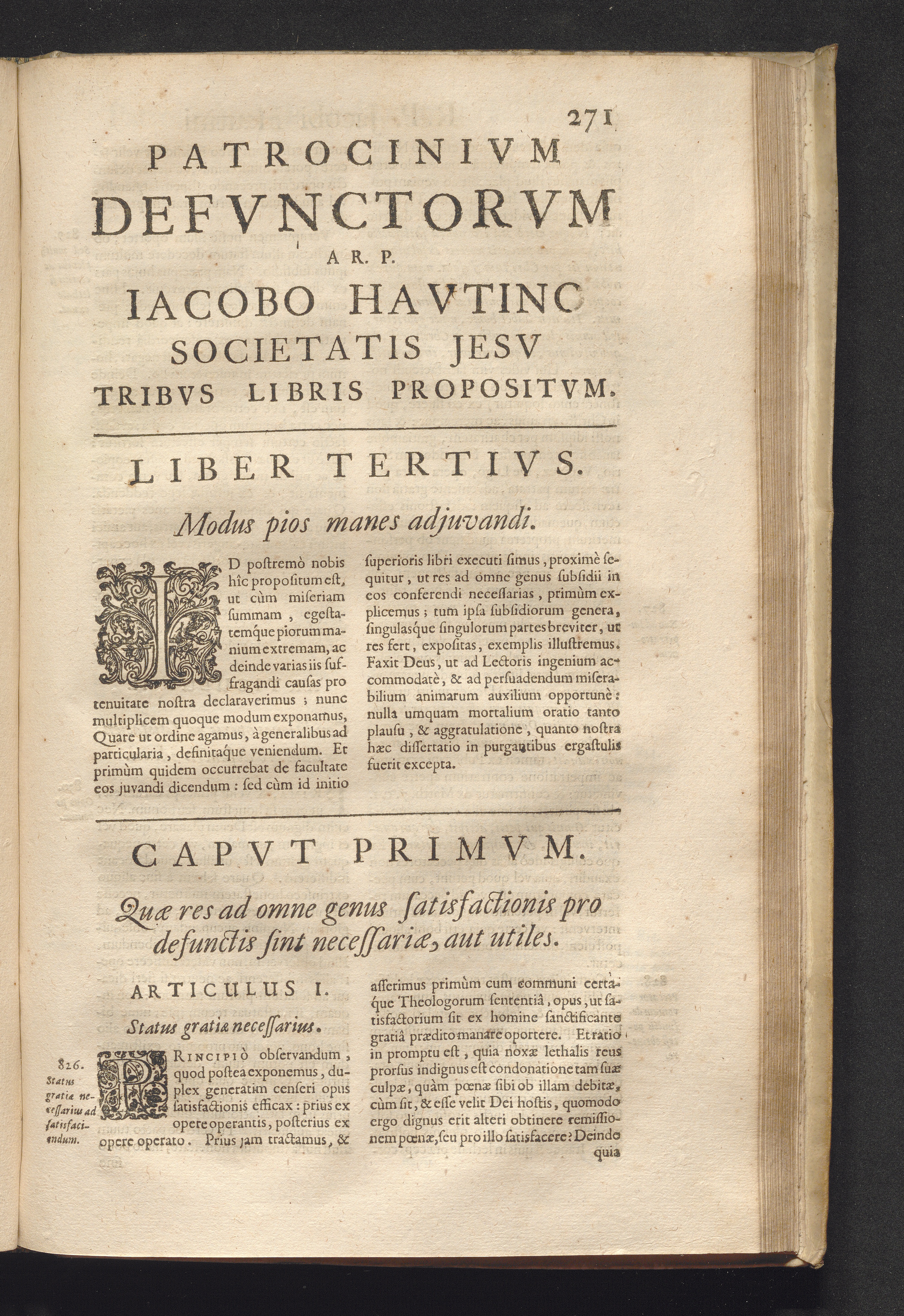 Patrocinivm Defvnctorvm : Tribus Libris Exaratum: Qvorvm Primvs Veritatem, Acerbitatem Ac Diuturnitatem Lustralium Cruciatuum; Alter Cavsas Vita Functis Opitulandi; Tertius Modos Complectitur. Tractatus Est Vivis Aeque Ac Mortuis Perutilis. Ex quo materia funebris in singulas anni Dominicas, & in decem Octavas Concionatoribus depromitur ... / A R. P. Iacobo Havtino Soc. Iesv Sacerdote