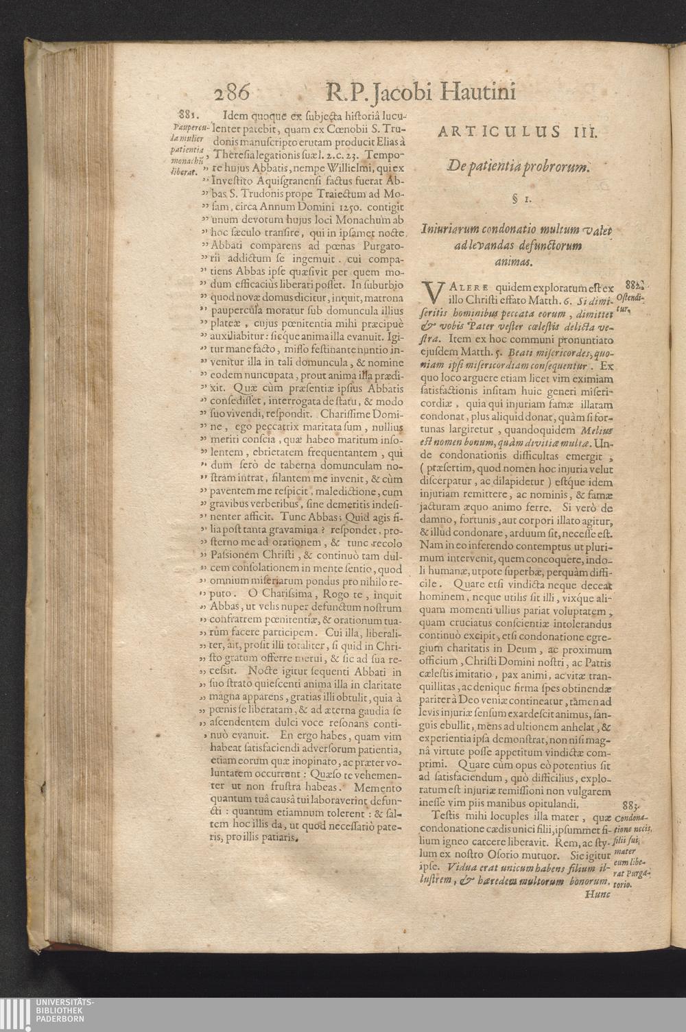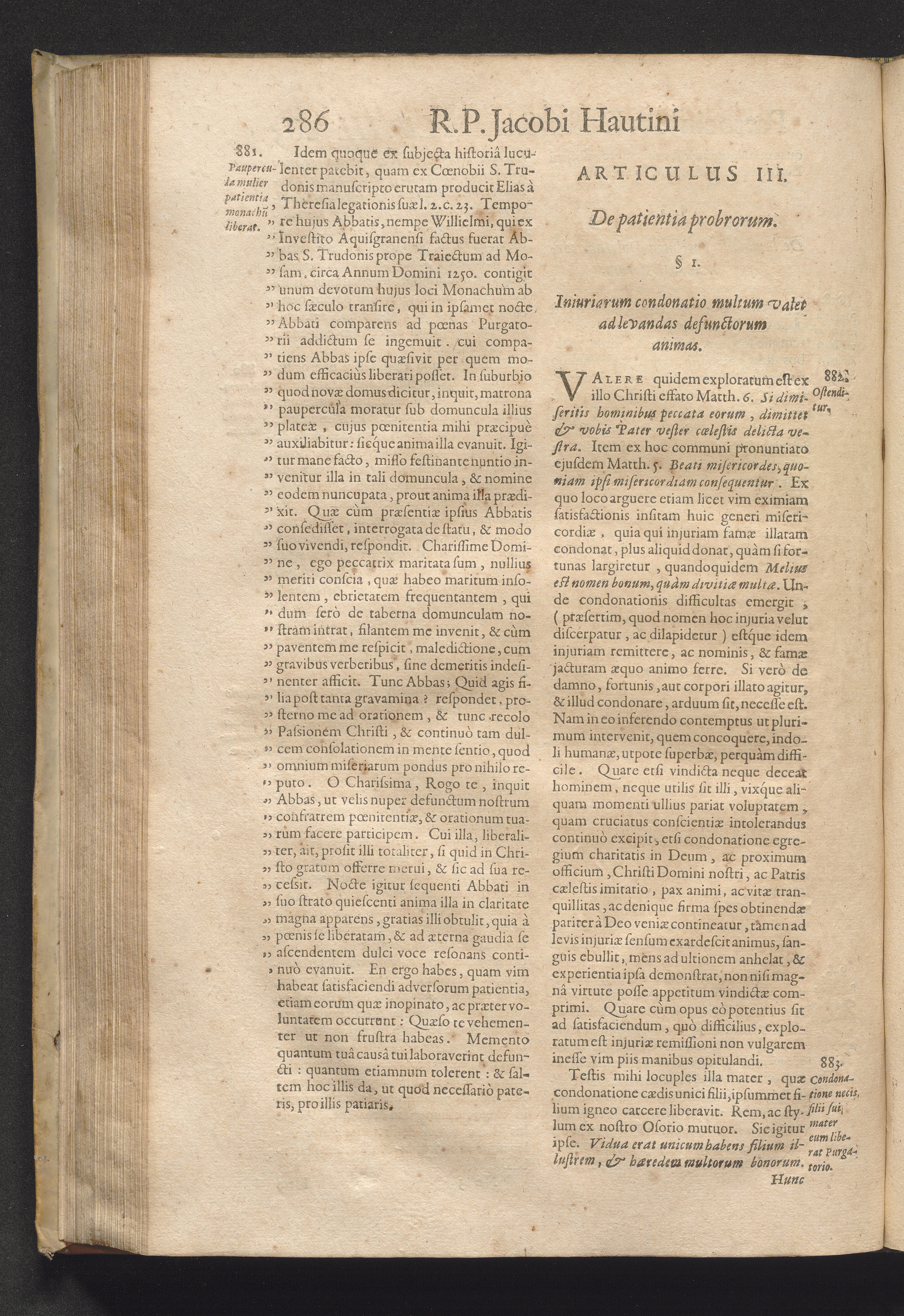 Patrocinivm Defvnctorvm : Tribus Libris Exaratum: Qvorvm Primvs Veritatem, Acerbitatem Ac Diuturnitatem Lustralium Cruciatuum; Alter Cavsas Vita Functis Opitulandi; Tertius Modos Complectitur. Tractatus Est Vivis Aeque Ac Mortuis Perutilis. Ex quo materia funebris in singulas anni Dominicas, & in decem Octavas Concionatoribus depromitur ... / A R. P. Iacobo Havtino Soc. Iesv Sacerdote