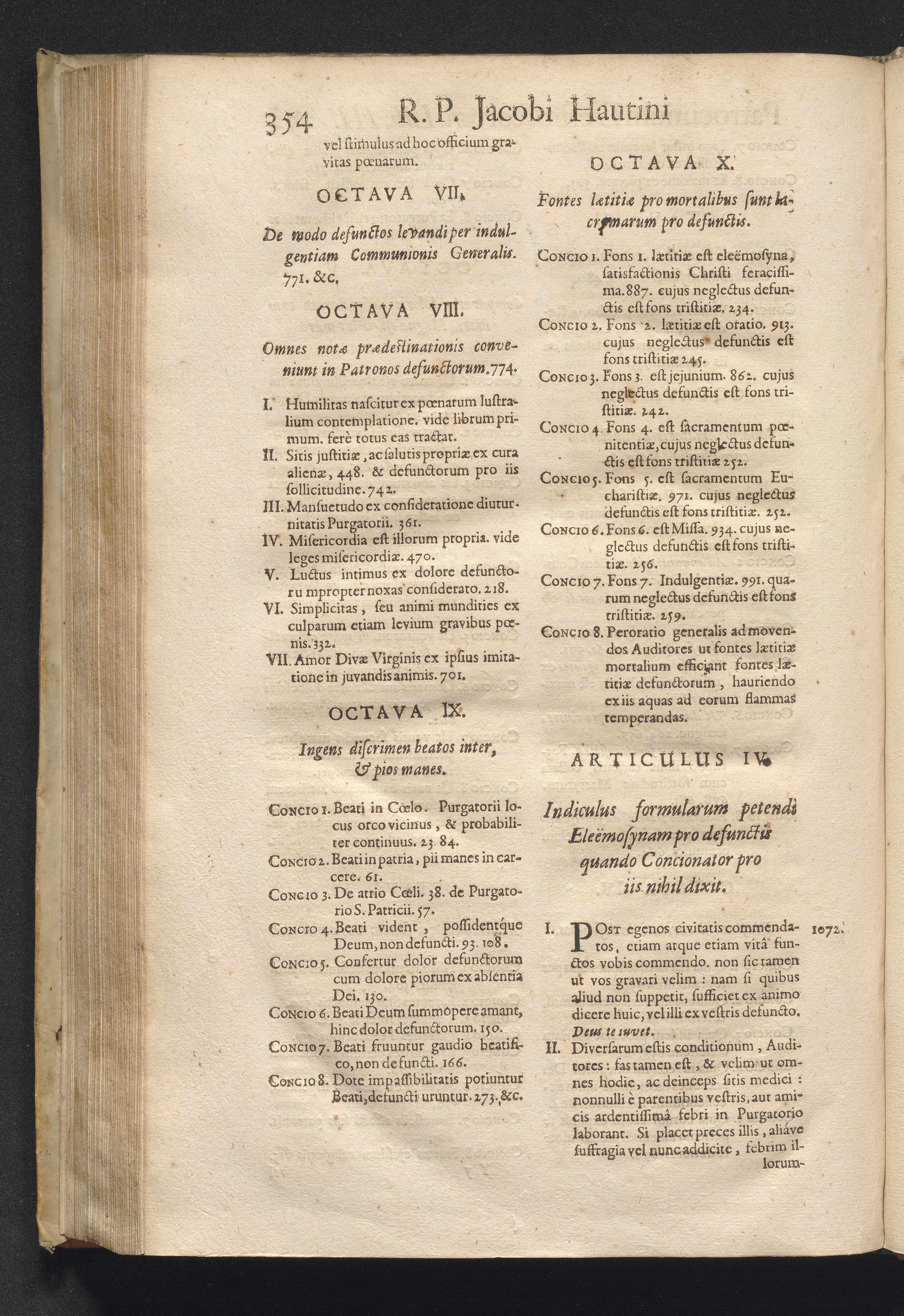 Patrocinivm Defvnctorvm : Tribus Libris Exaratum: Qvorvm Primvs Veritatem, Acerbitatem Ac Diuturnitatem Lustralium Cruciatuum; Alter Cavsas Vita Functis Opitulandi; Tertius Modos Complectitur. Tractatus Est Vivis Aeque Ac Mortuis Perutilis. Ex quo materia funebris in singulas anni Dominicas, & in decem Octavas Concionatoribus depromitur ... / A R. P. Iacobo Havtino Soc. Iesv Sacerdote