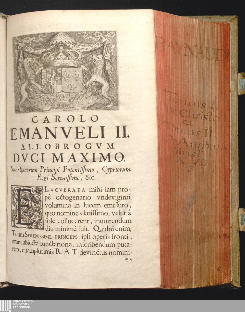 Carolo Emanveli II. Allobrogvm Dvci Maximo, Subalpinorum Principi Potentissimo, Cypriorum[...]