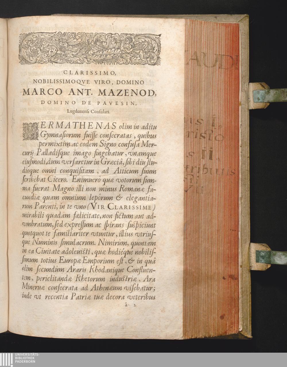Clarissimo, Nobilissimoqve Viro, Domino Marco Ant. Mazenod, Domino De Pavesin, Lugdunensi[...]