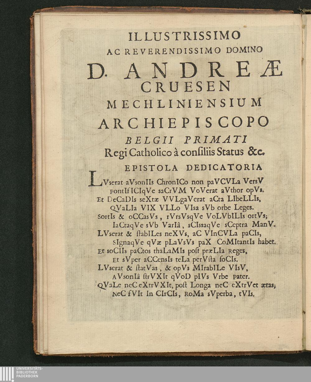 Illustrissimo Ac Reverendissimo Domino D. Andreæ Cruesen Mechliniensium Archiepiscopo[...]
