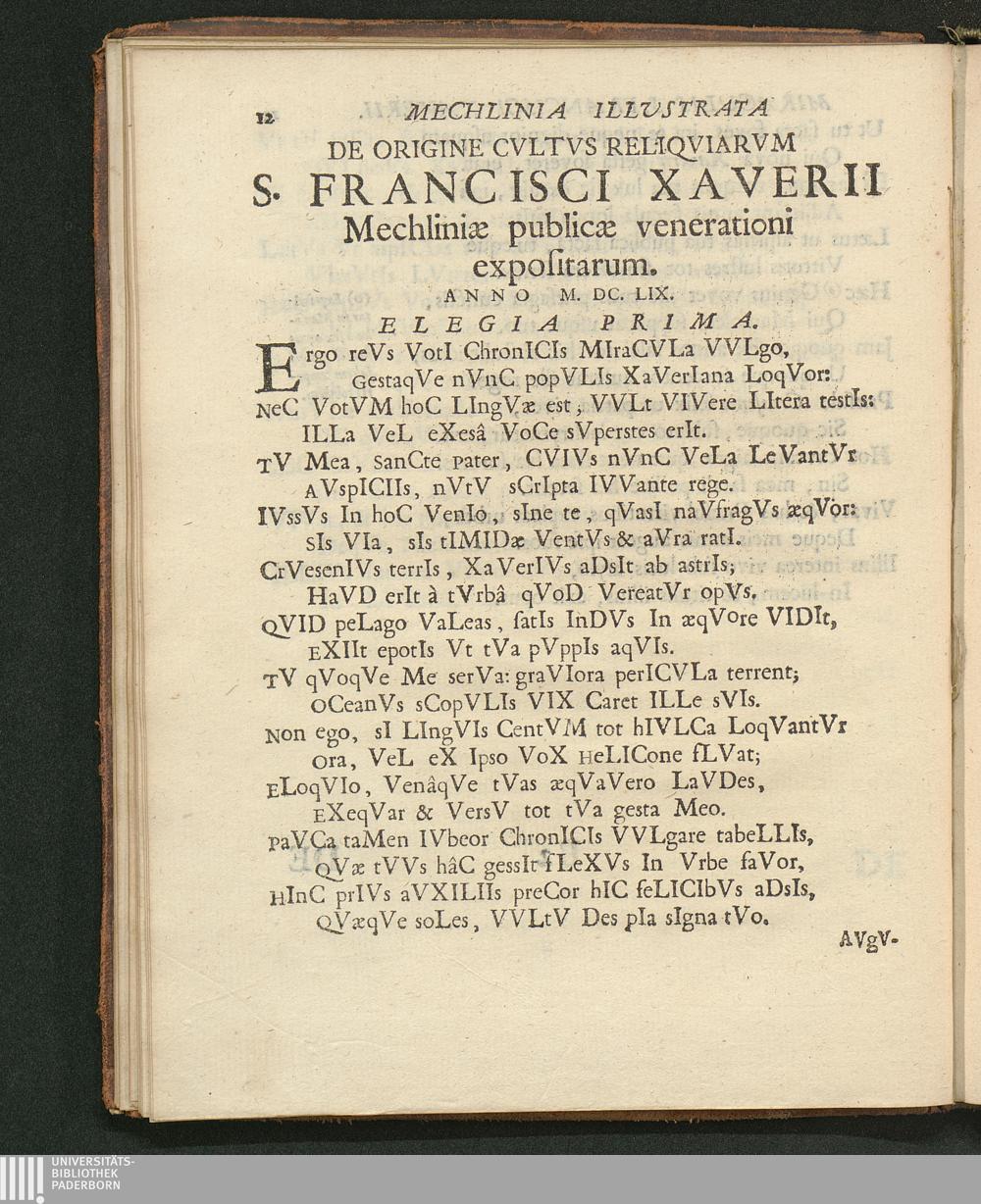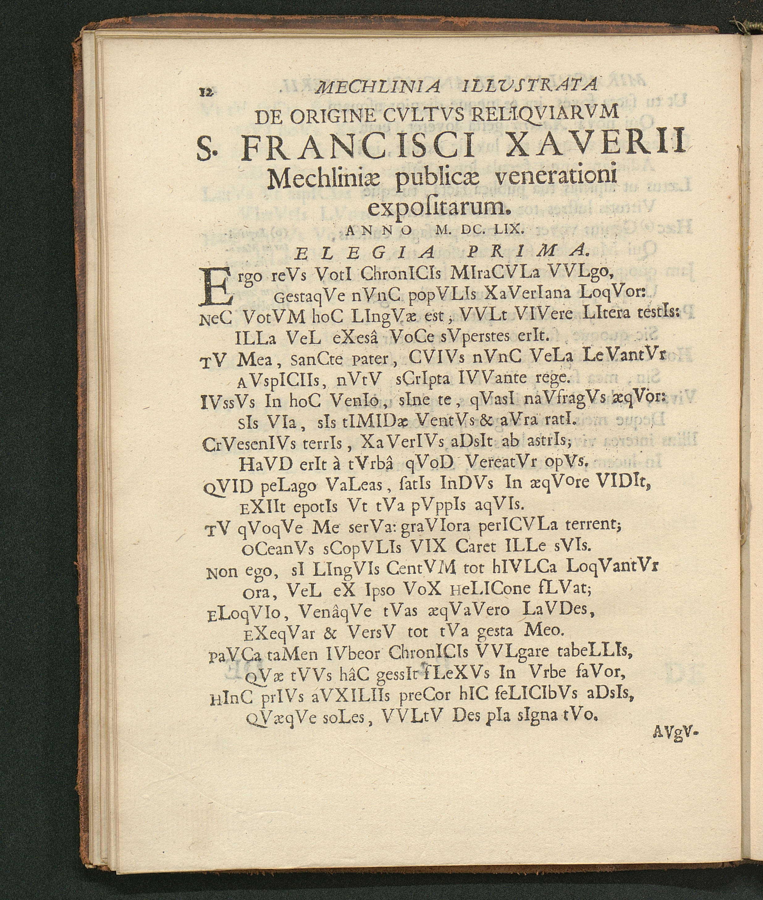 Mechlinia Illustrata Luce Miraculorum S. Francisci Xaverii Orbis Utriusque Solis Ac Thaumaturgi Chronicis Distichis evulgata Anno M.D.C.LXVI. / Auctore Gerardo Grumsel Societatis Jesv Sacerdote