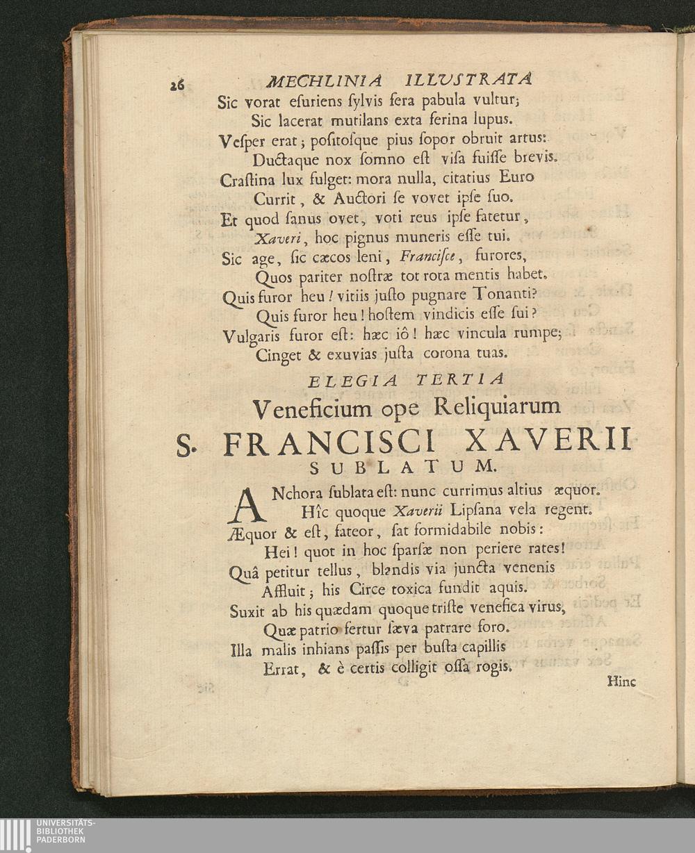 Mechlinia Illustrata Luce Miraculorum S. Francisci Xaverii Orbis Utriusque Solis Ac Thaumaturgi Chronicis Distichis evulgata Anno M.D.C.LXVI. / Auctore Gerardo Grumsel Societatis Jesv Sacerdote