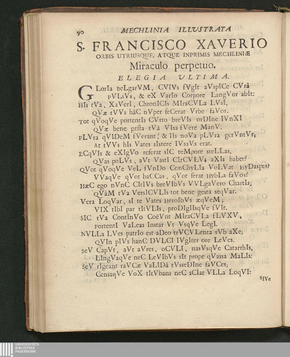 Mechlinia Illustrata Luce Miraculorum S. Francisci Xaverii Orbis Utriusque Solis Ac Thaumaturgi Chronicis Distichis evulgata Anno M.D.C.LXVI. / Auctore Gerardo Grumsel Societatis Jesv Sacerdote