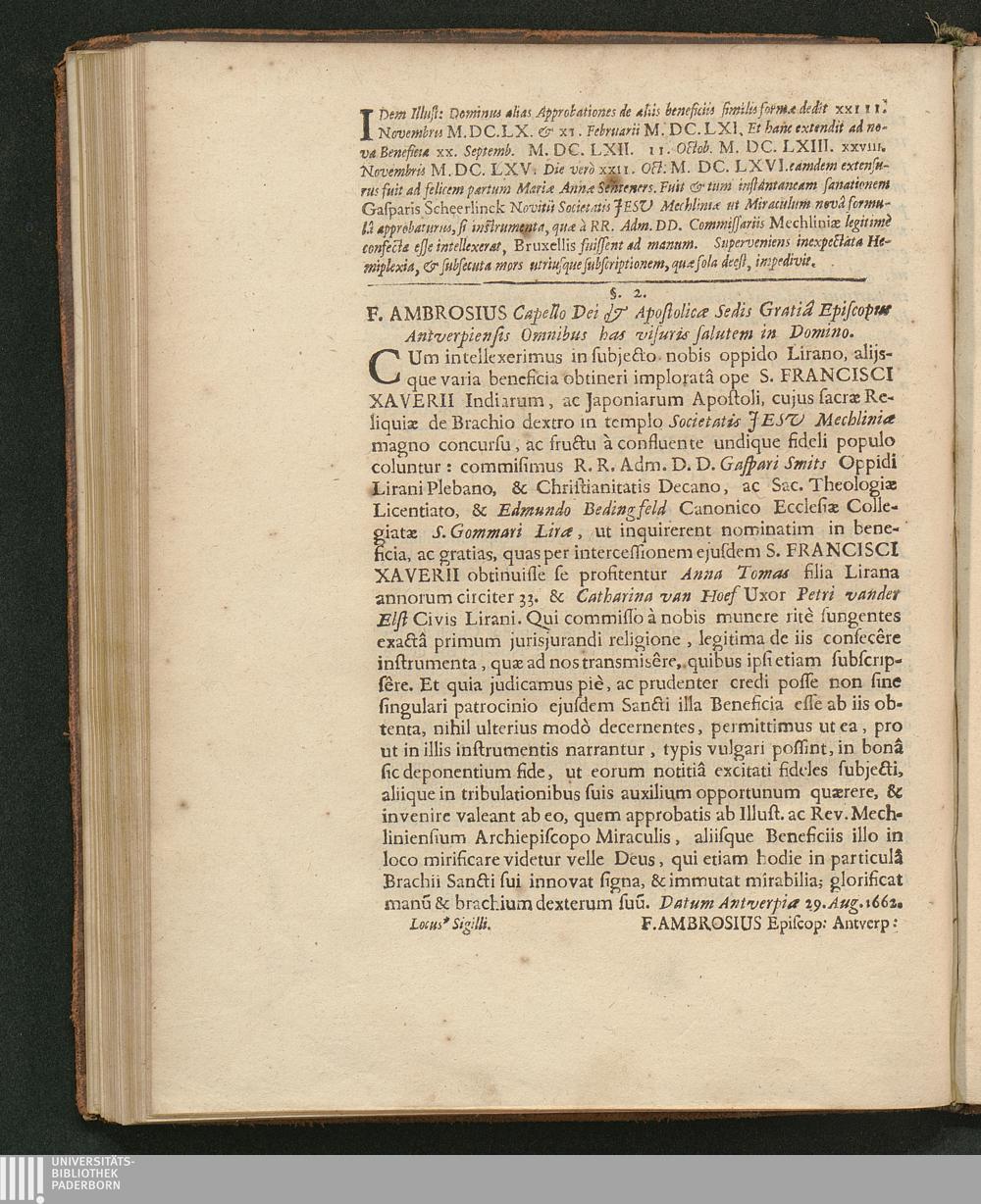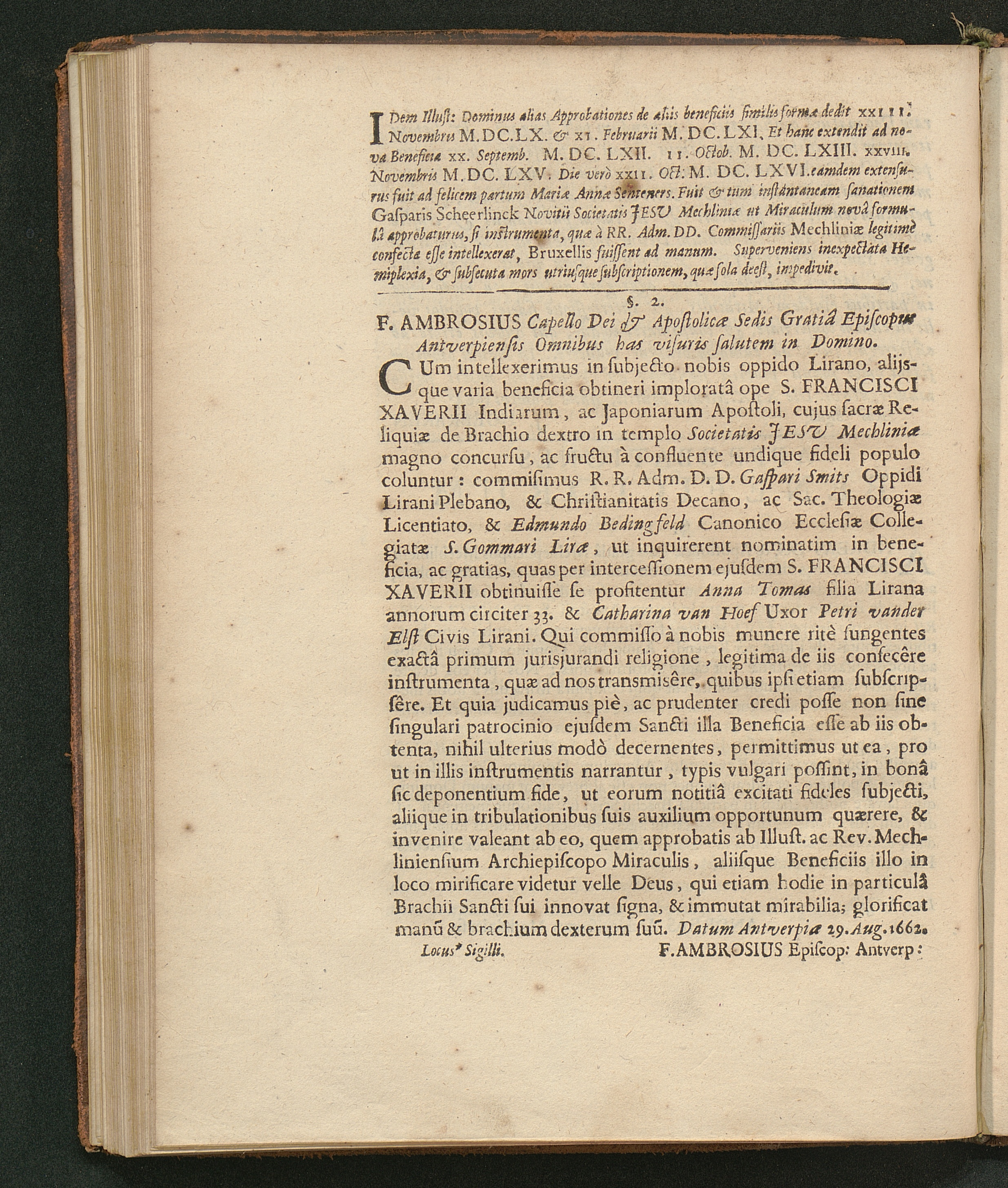 Mechlinia Illustrata Luce Miraculorum S. Francisci Xaverii Orbis Utriusque Solis Ac Thaumaturgi Chronicis Distichis evulgata Anno M.D.C.LXVI. / Auctore Gerardo Grumsel Societatis Jesv Sacerdote