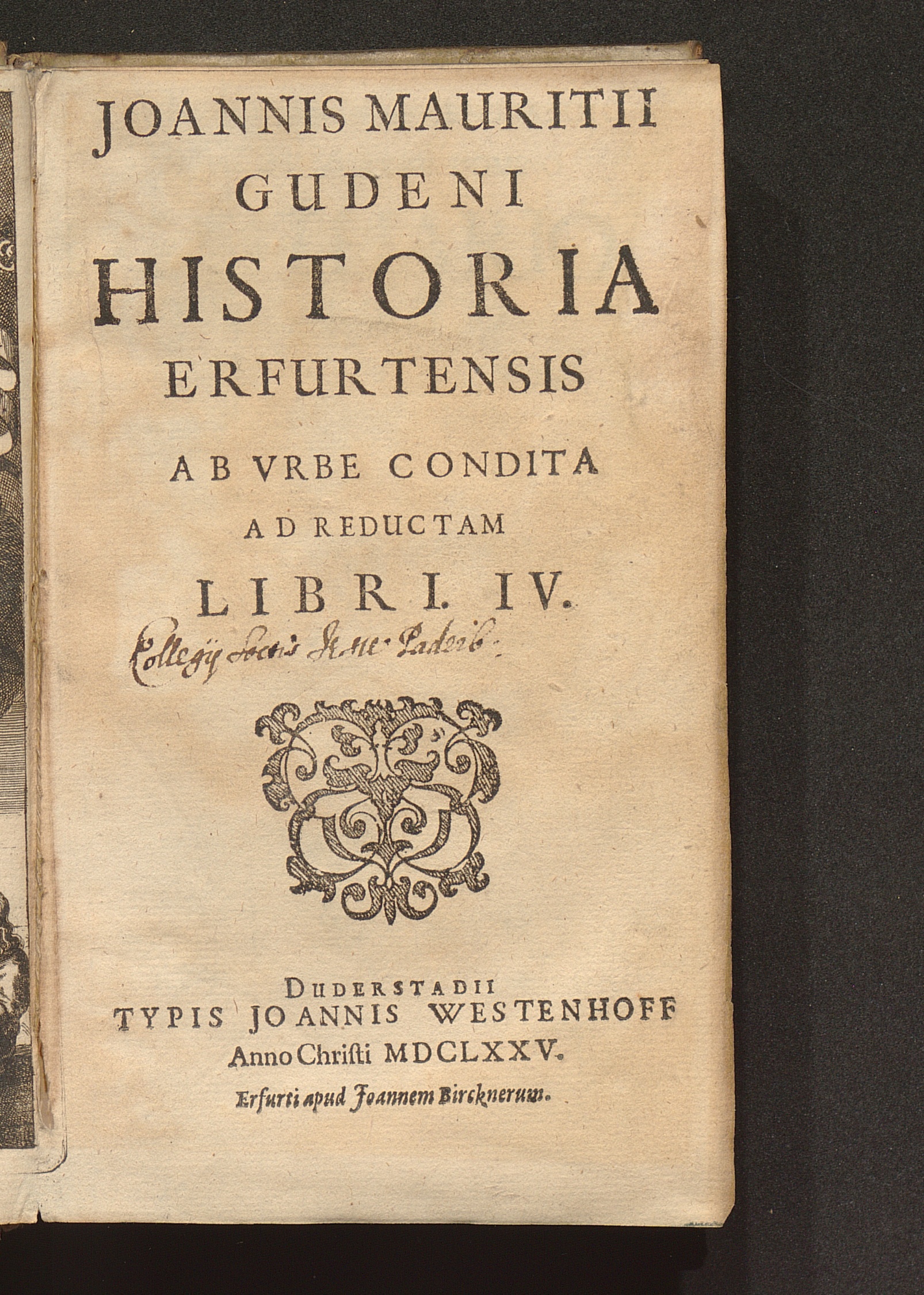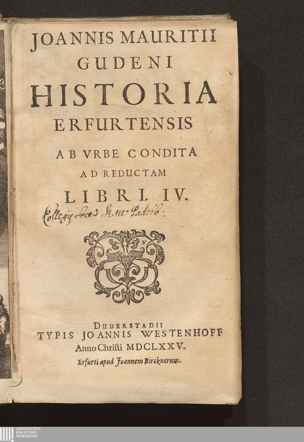 Joannis Mauritii Gudeni Historia Erfurtensis Ab Vrbe Condita Ad Reductam : Libri. IV.