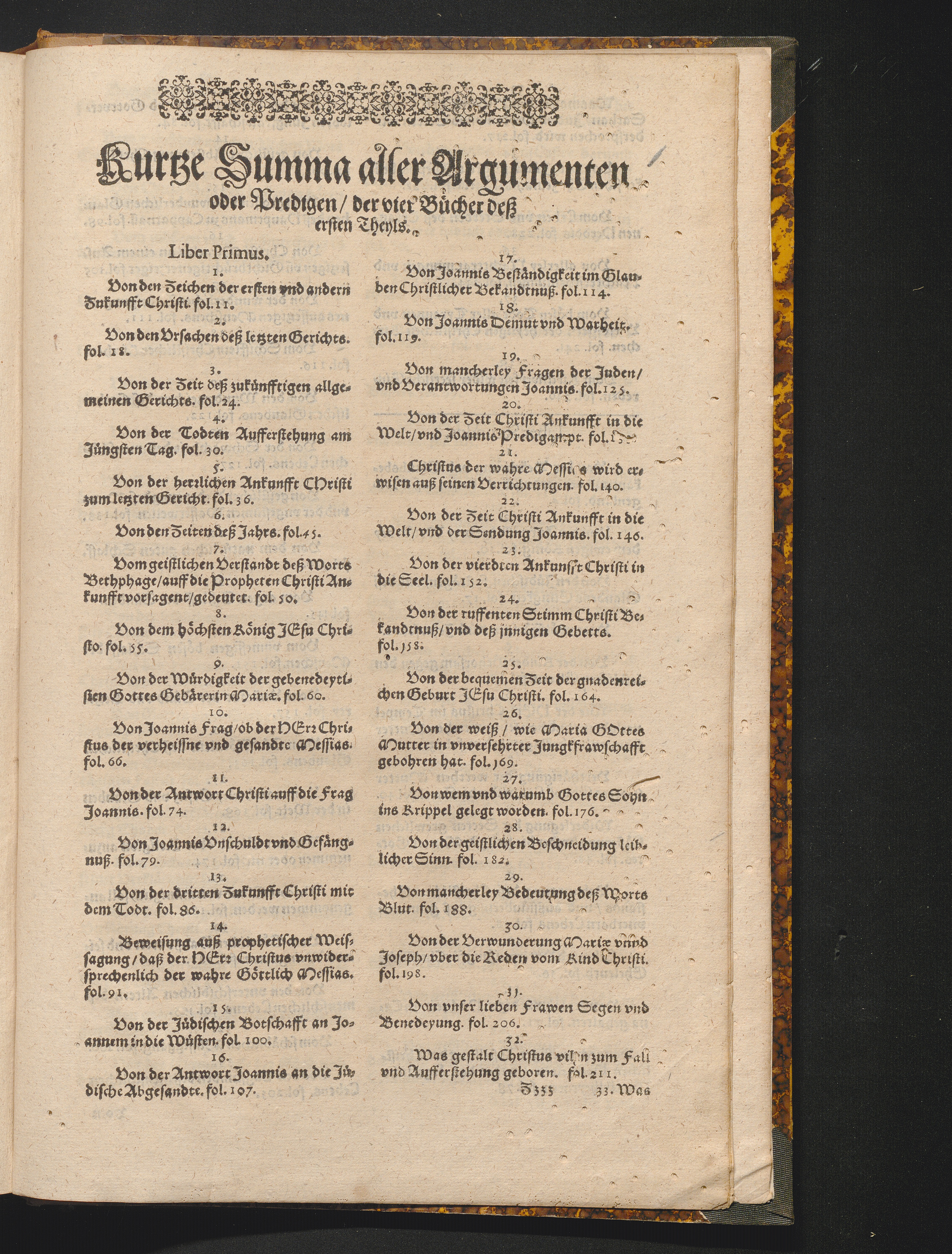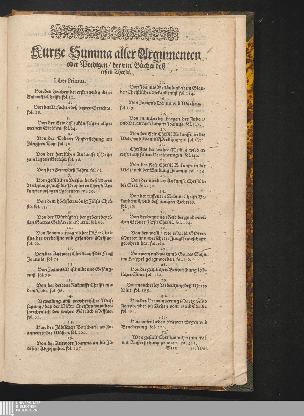 Kurtze Summa aller Argumenten oder Predigen/ der vier Bücher deß ersten Theyls.