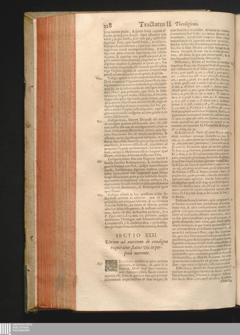 Sectio XXXI. Vtrùm ad meritum de condigno requiratur status viæ in personâ meren[...]